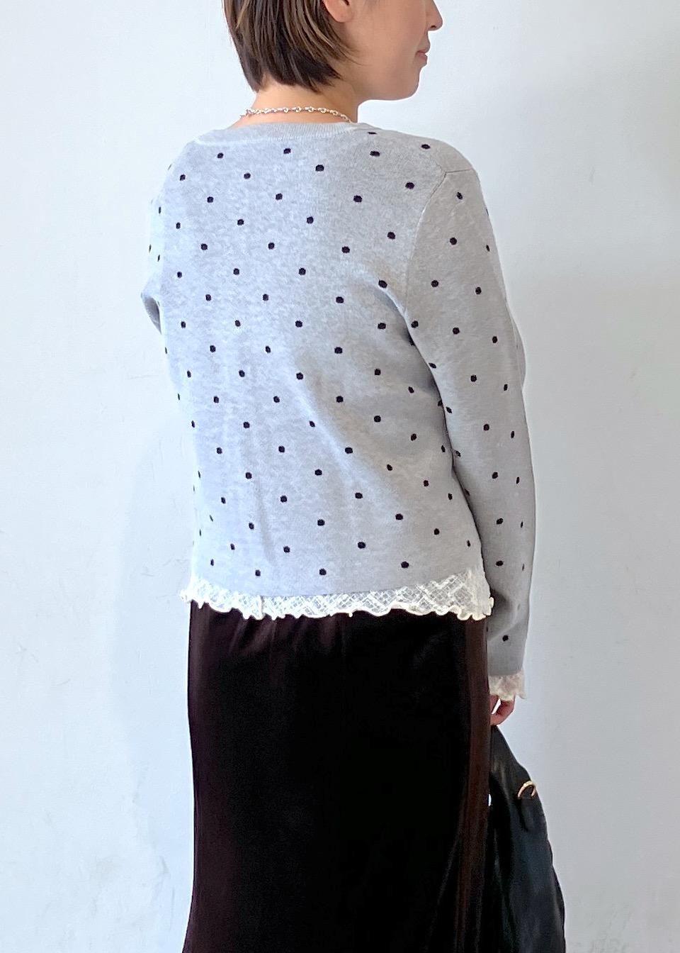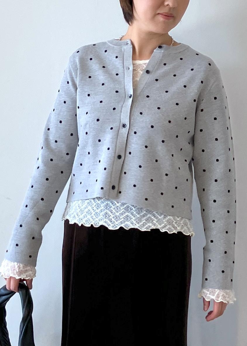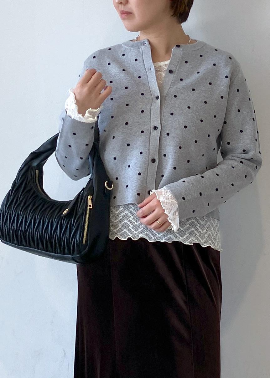 VISドットジャガードカーディガングレー系 / F¥5,929レビュードット柄が小さめなので幼く見えず、生地感はもっちりとした立体感があり、シルエットは程よくゆとりがあるので体型を拾いません!前を閉めてトップスとして着用もできキレイめにもカジュアルダウンも両方使えます!ストレッチ性がありインナーを重ねて着てもおすすめです!寒くなってきたらトップス使いでコートのインナーまでこの冬長く着用頂けます!