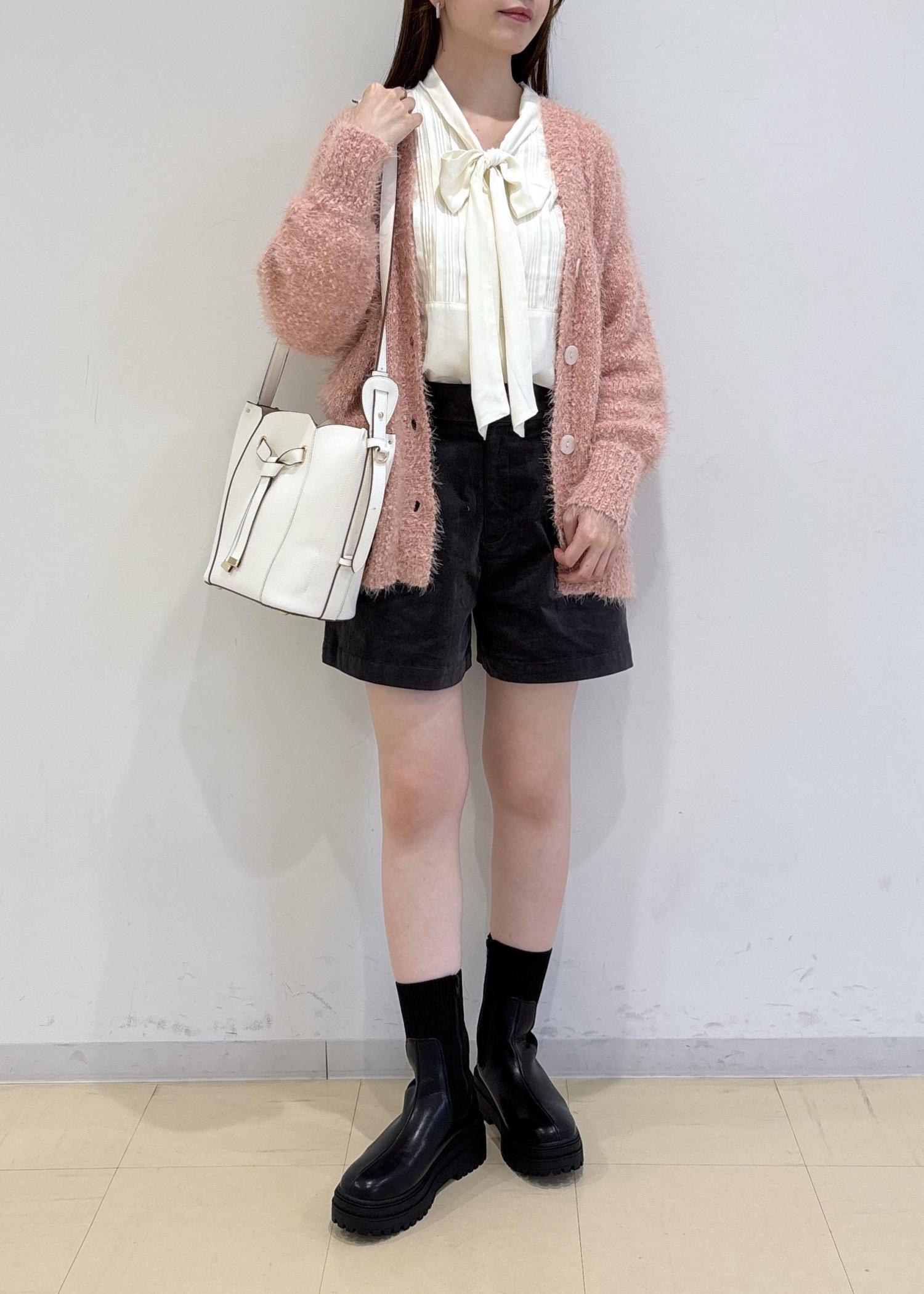 中にボウタイブラウスを合わせることでリボンがワンポイントに♪