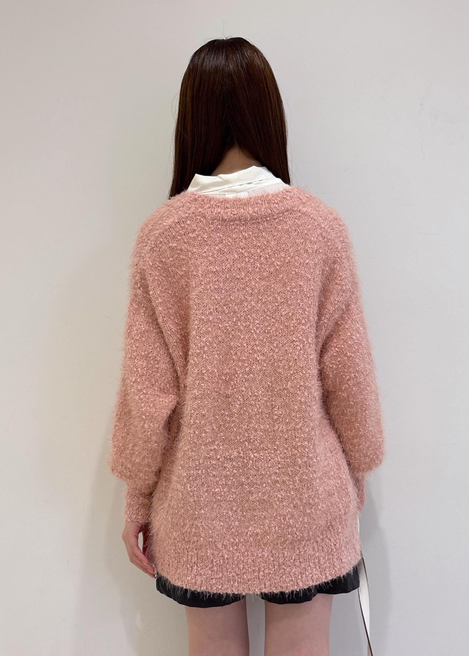 VISポップコーンヤーンラメフェザーニットカーディガン/WEB限定FSサイズピンク / F¥5,271レビュー163cmでFサイズ着用。お尻がすっぽり隠れる丈感でゆるっとしたサイズです。