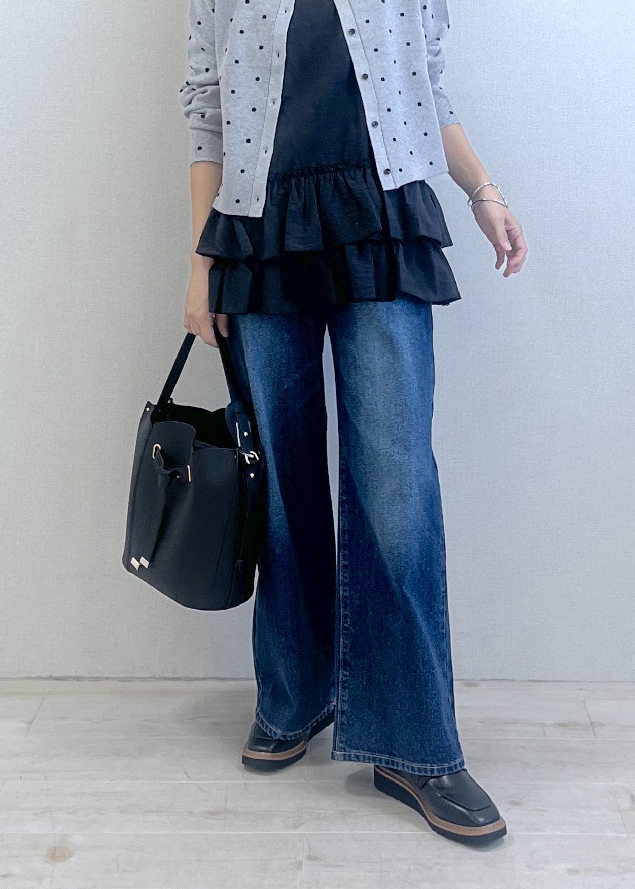 ワイドデニムでラフに仕上げると、頑張りすぎないおしゃれ感が出せて◎