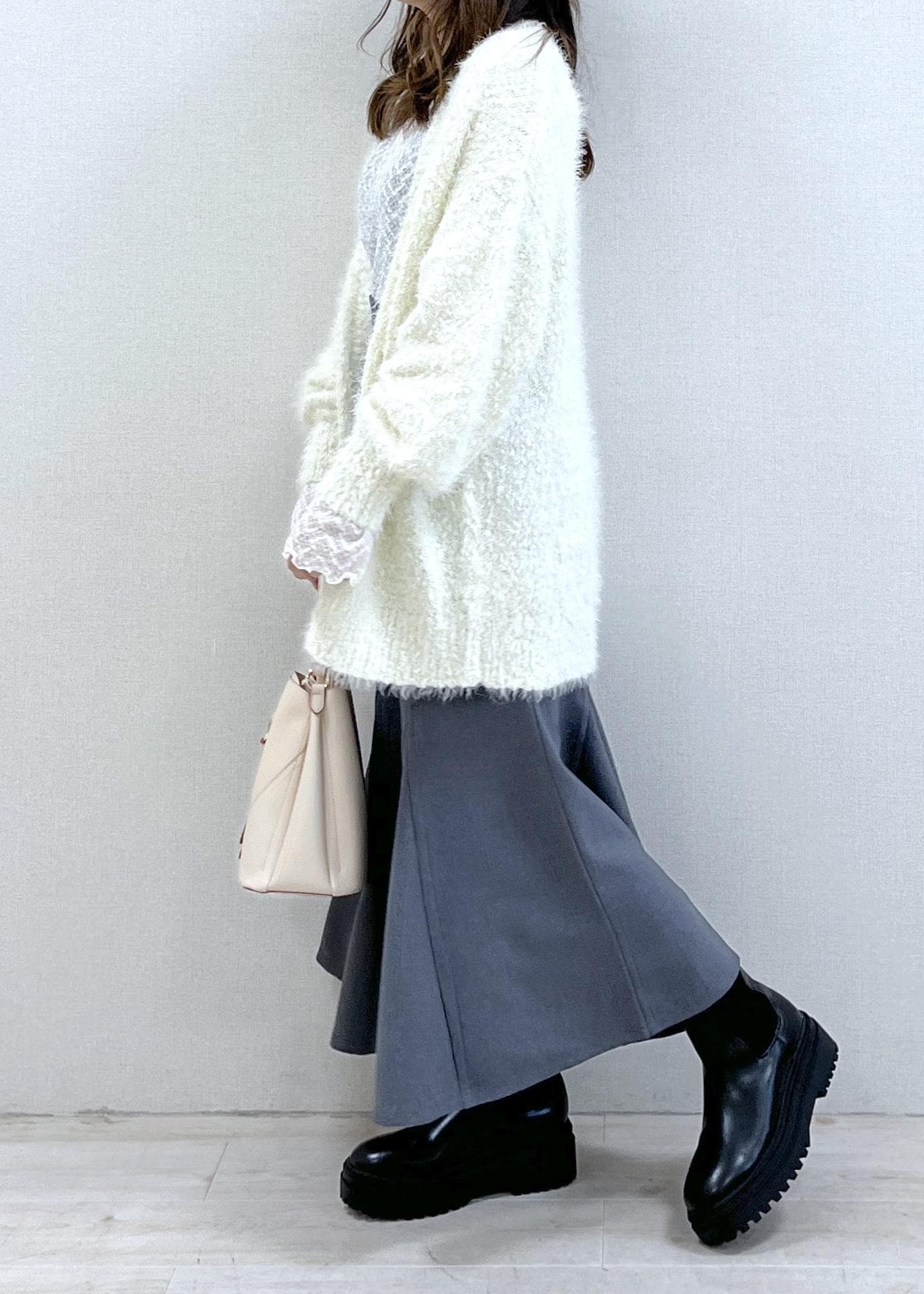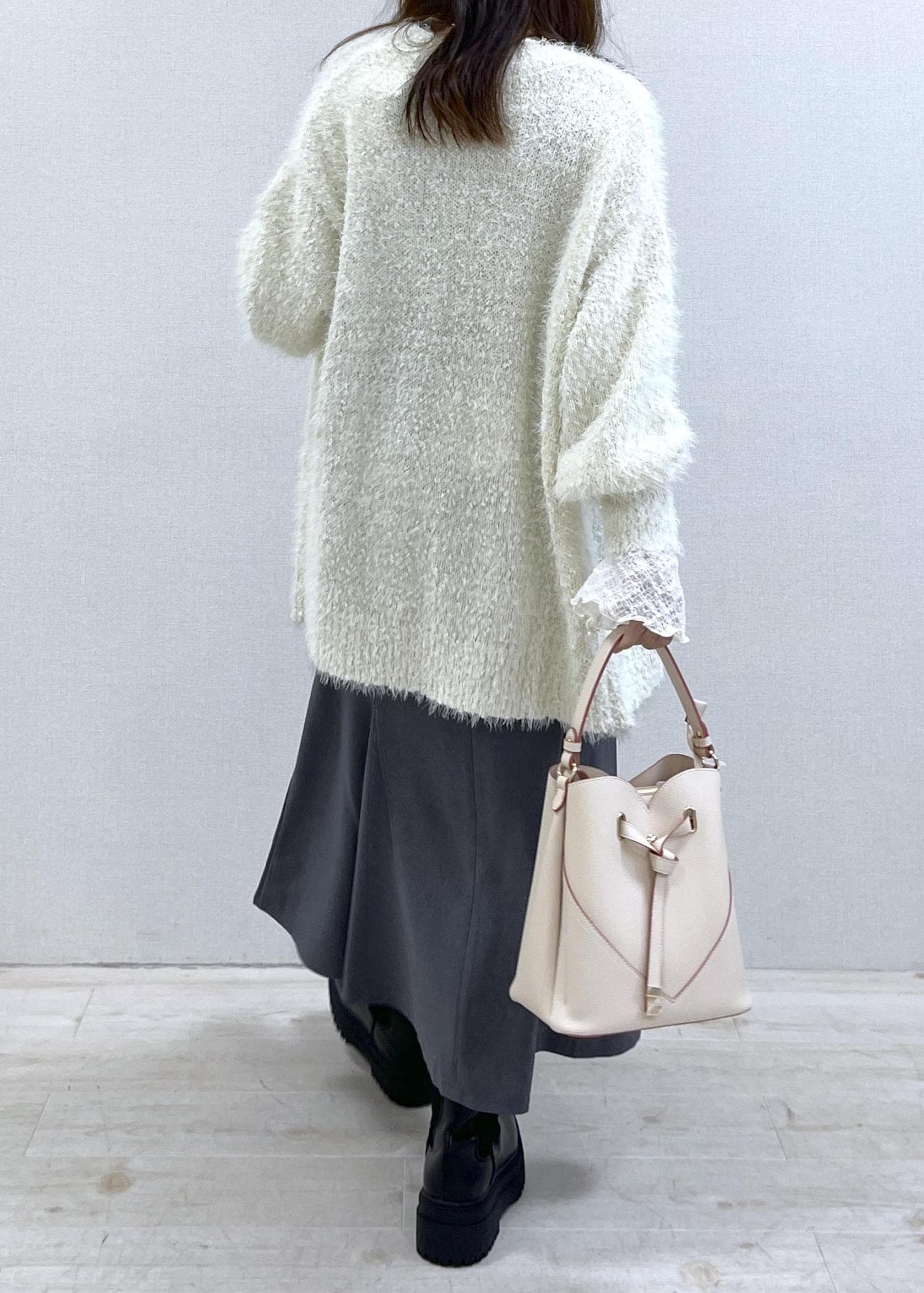 ふわもこ×レースでつくる大人のやわらかトーンコーデ