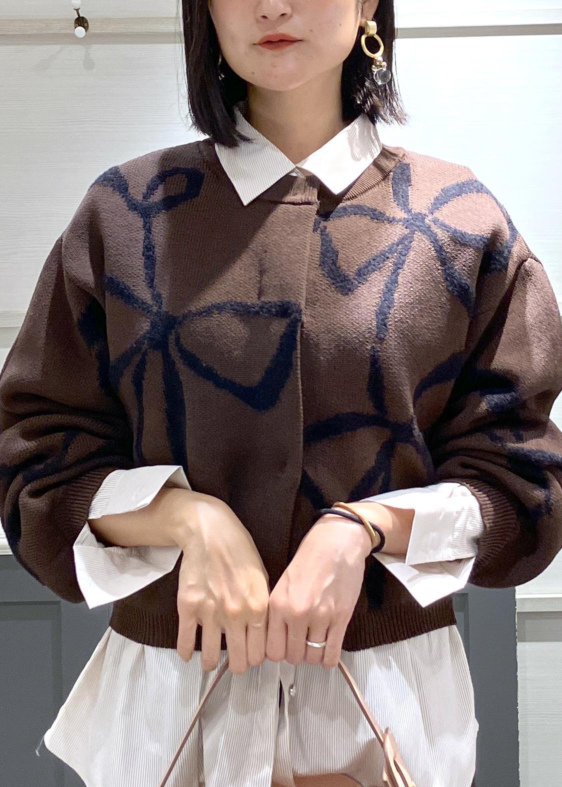 リボンモチーフジャガードカーディガン/イージーケア