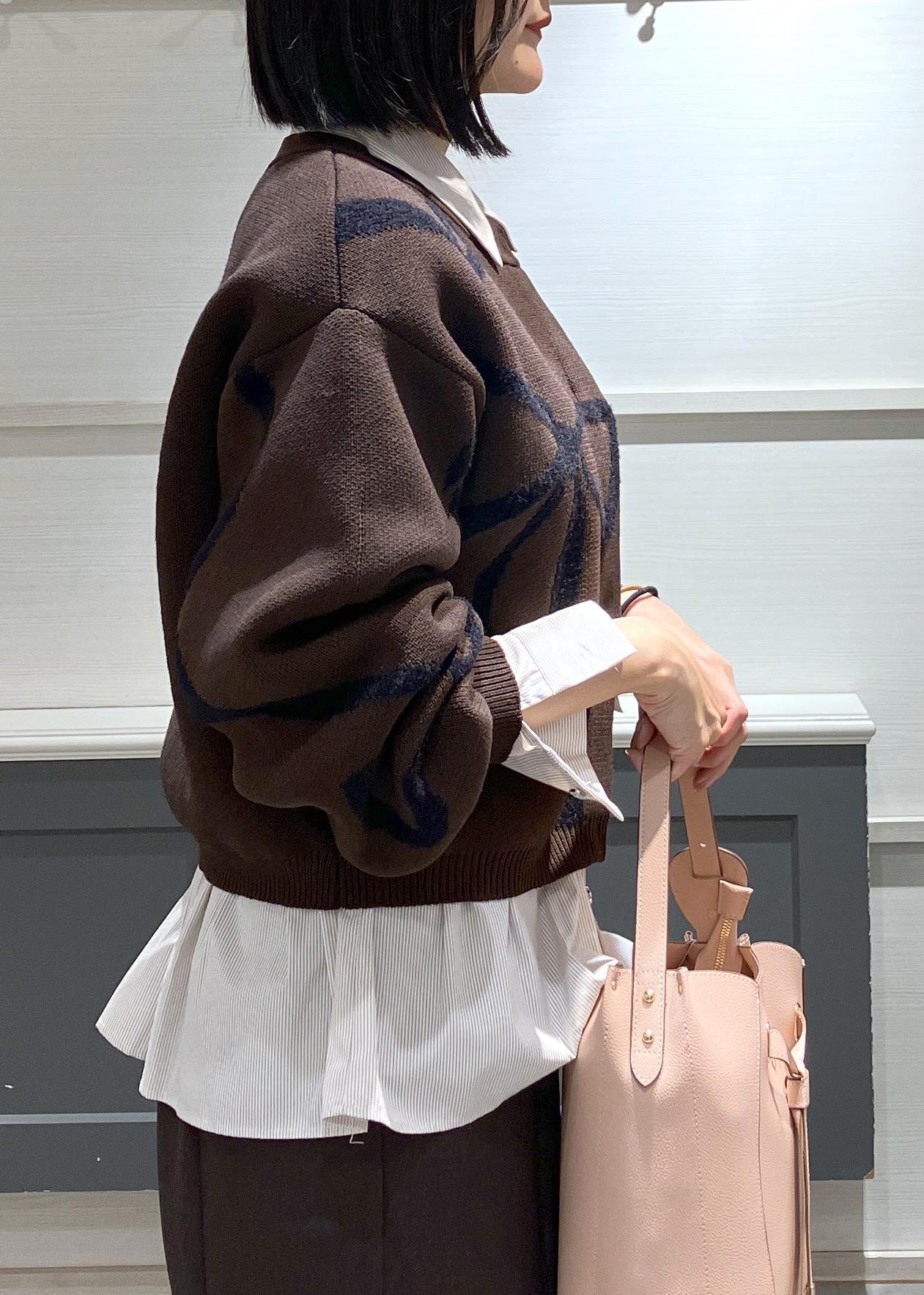 1枚で着てもかわいいリボンカーディガンをシャーリングブラウスとレイヤードしてもっと素敵にしました♡