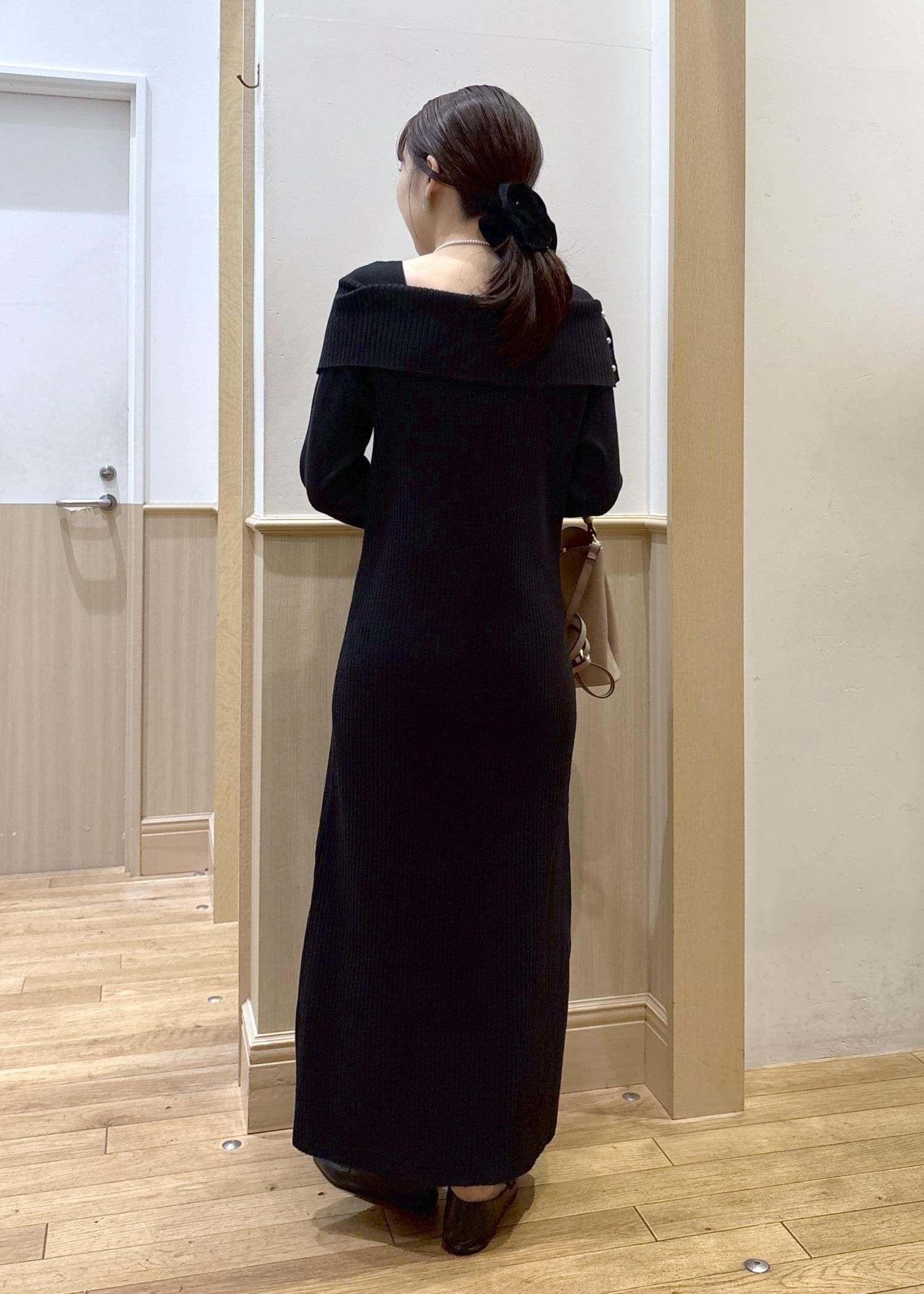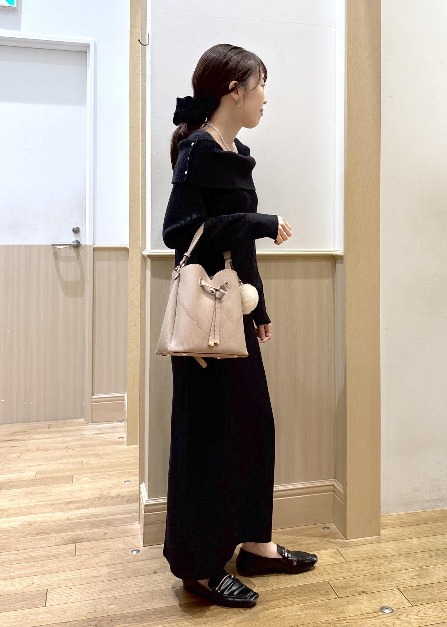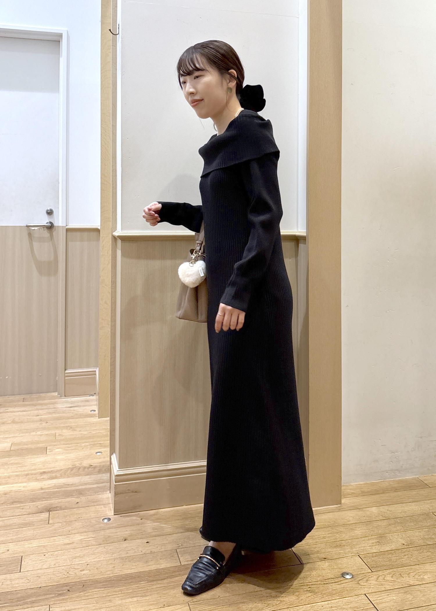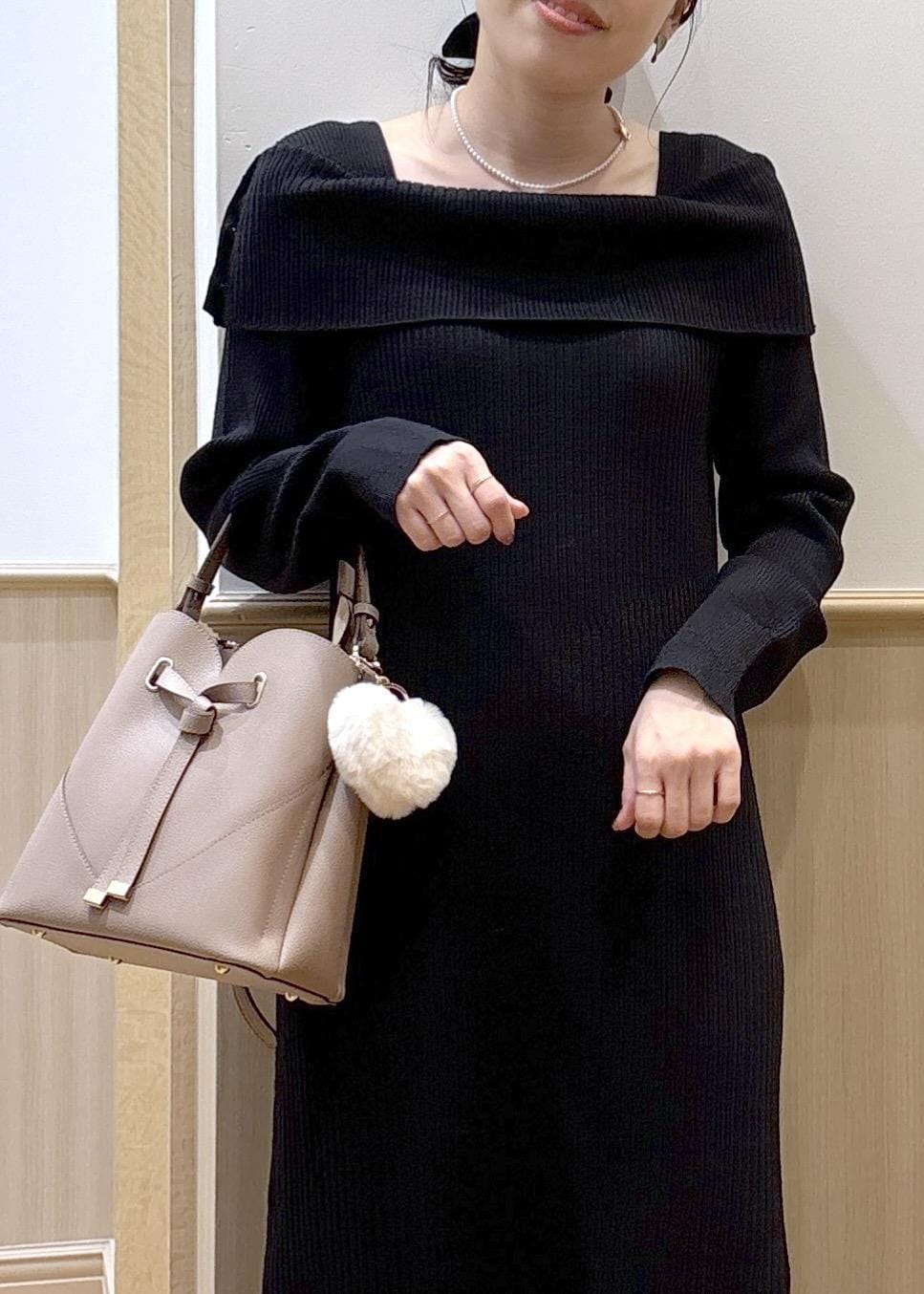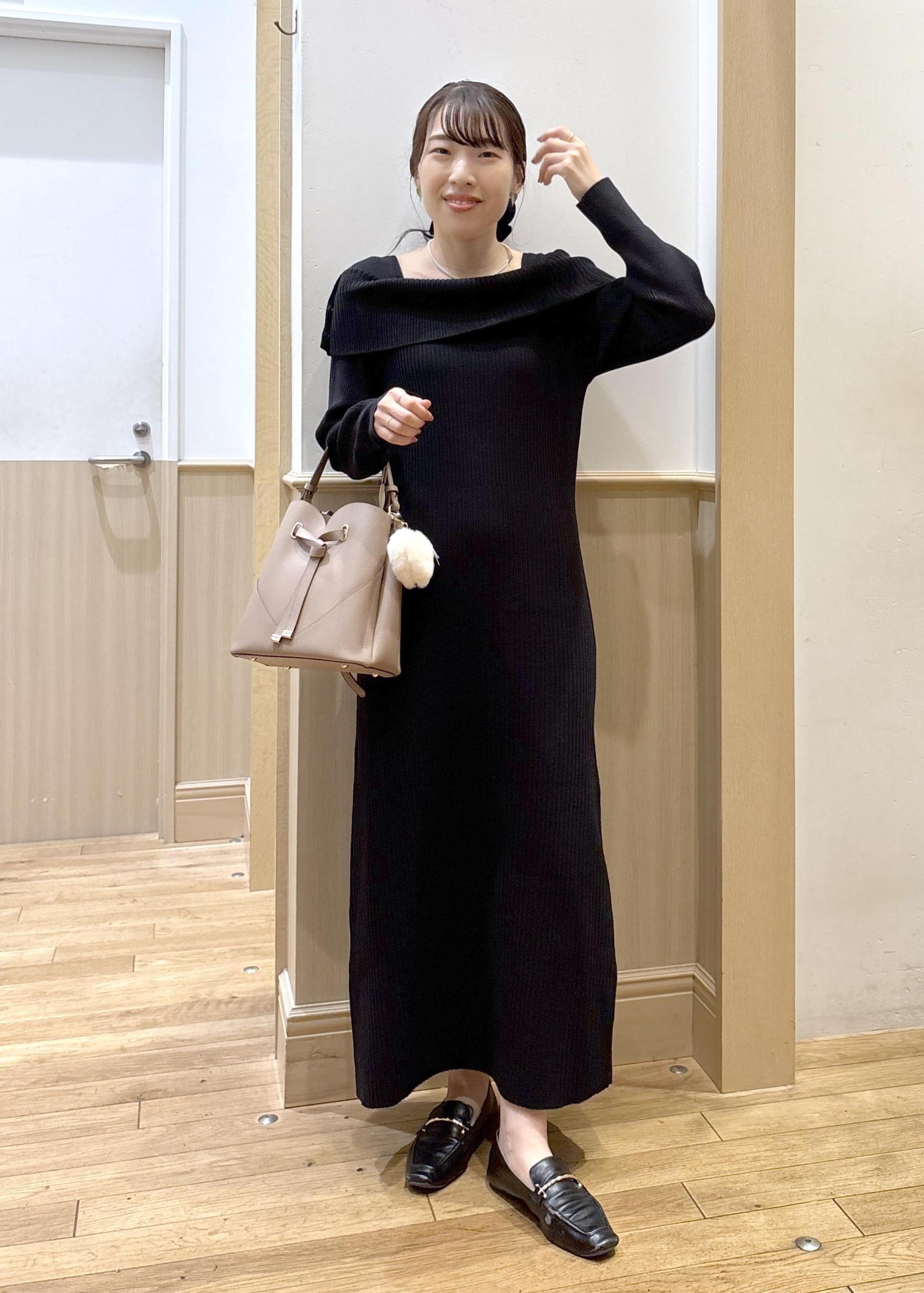 VISアシメオフショルリブニット美シルエットワンピース/着丈が選べるブラック / F¥8,899レビュー人気のオフショルデザインに