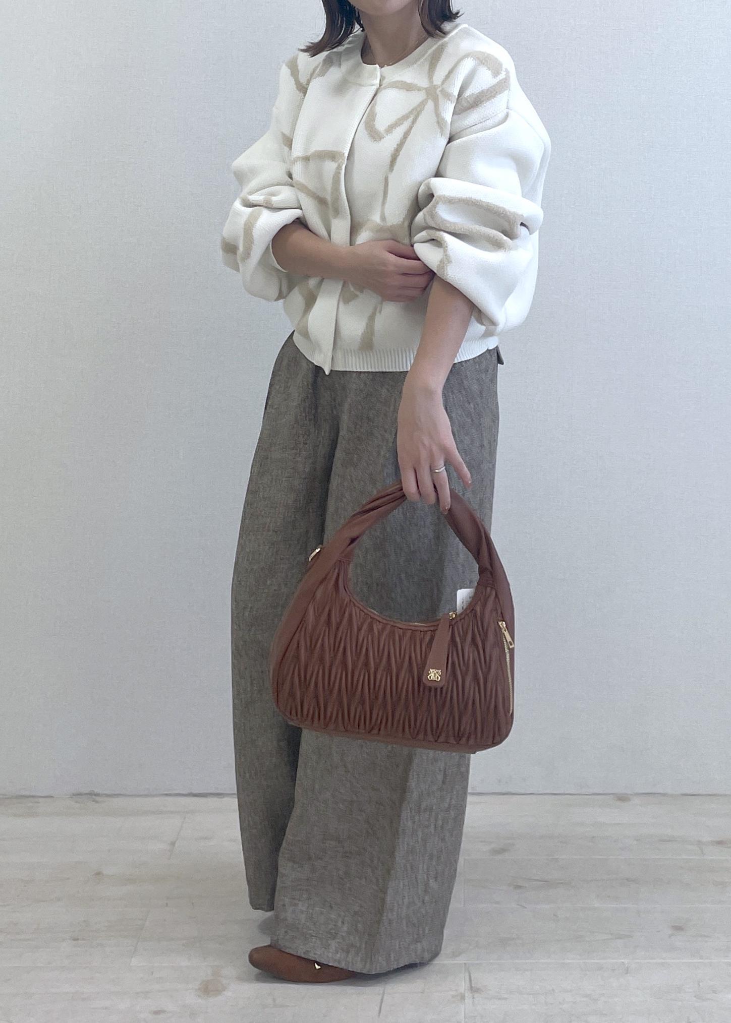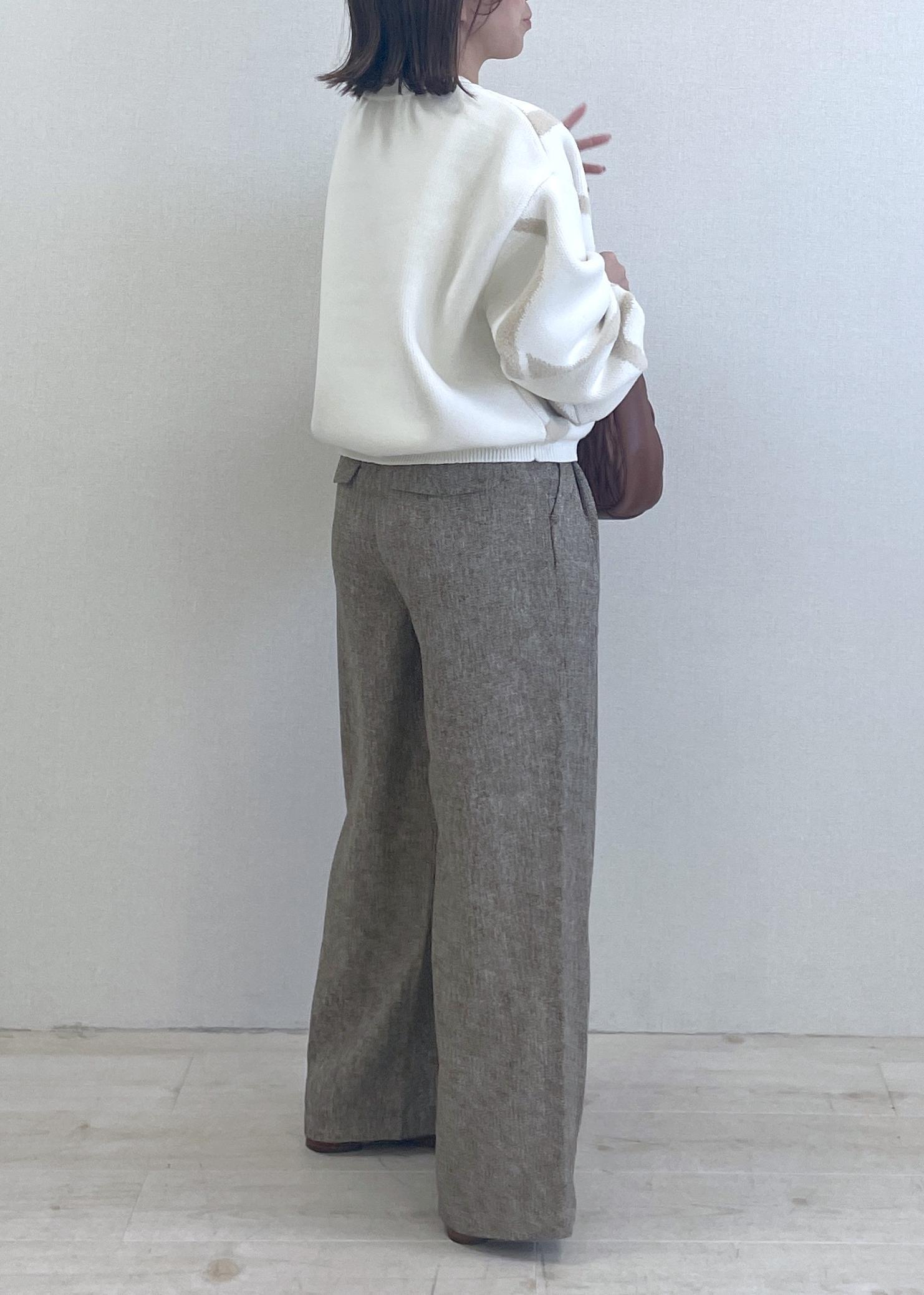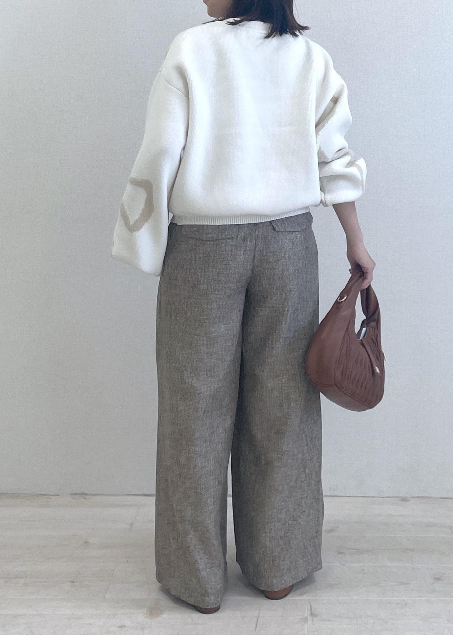 太めの形ですがこのダボっと感が可愛く、トップスは少し短めのもので合わせるとバランスよく着用できると思います! -