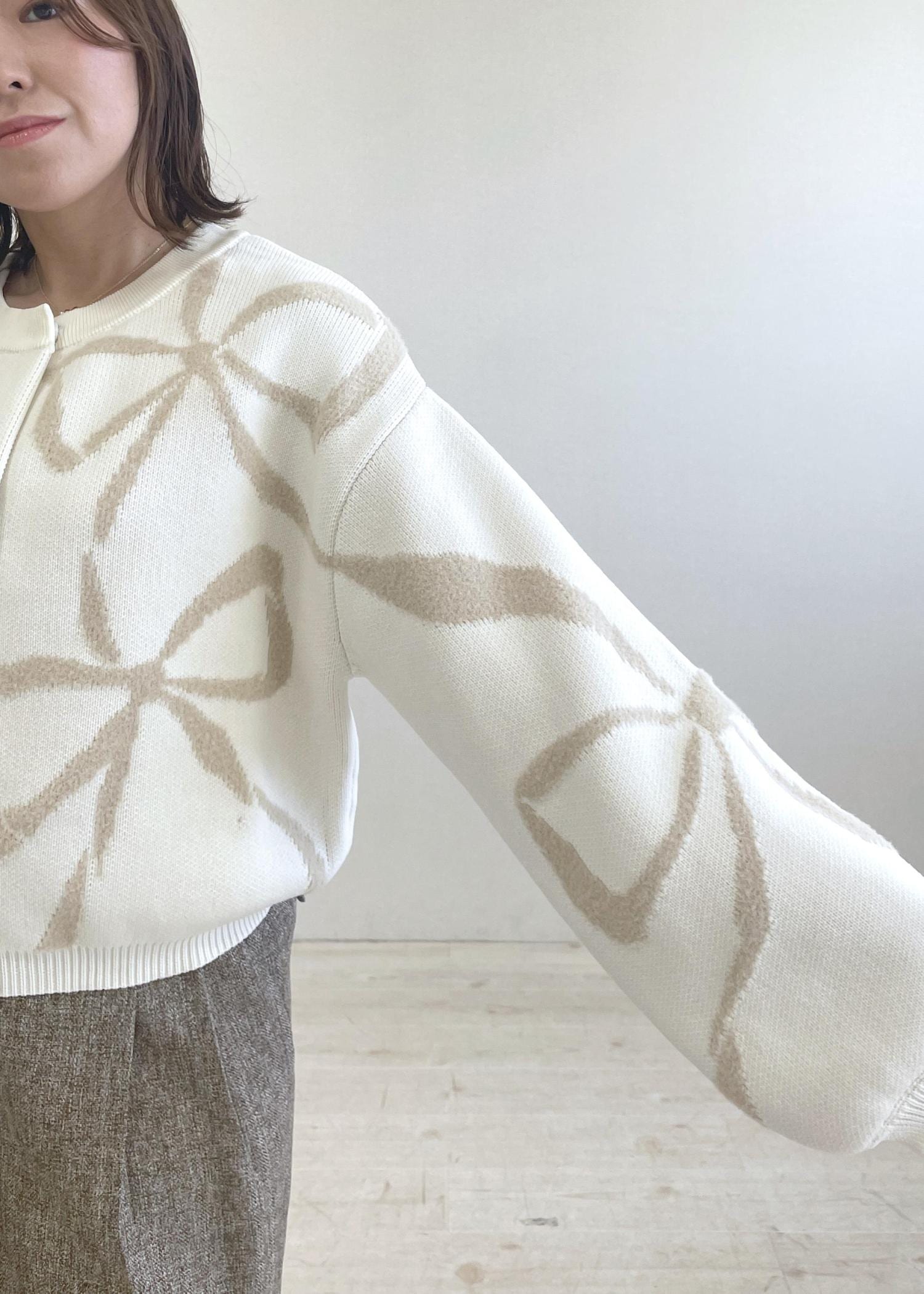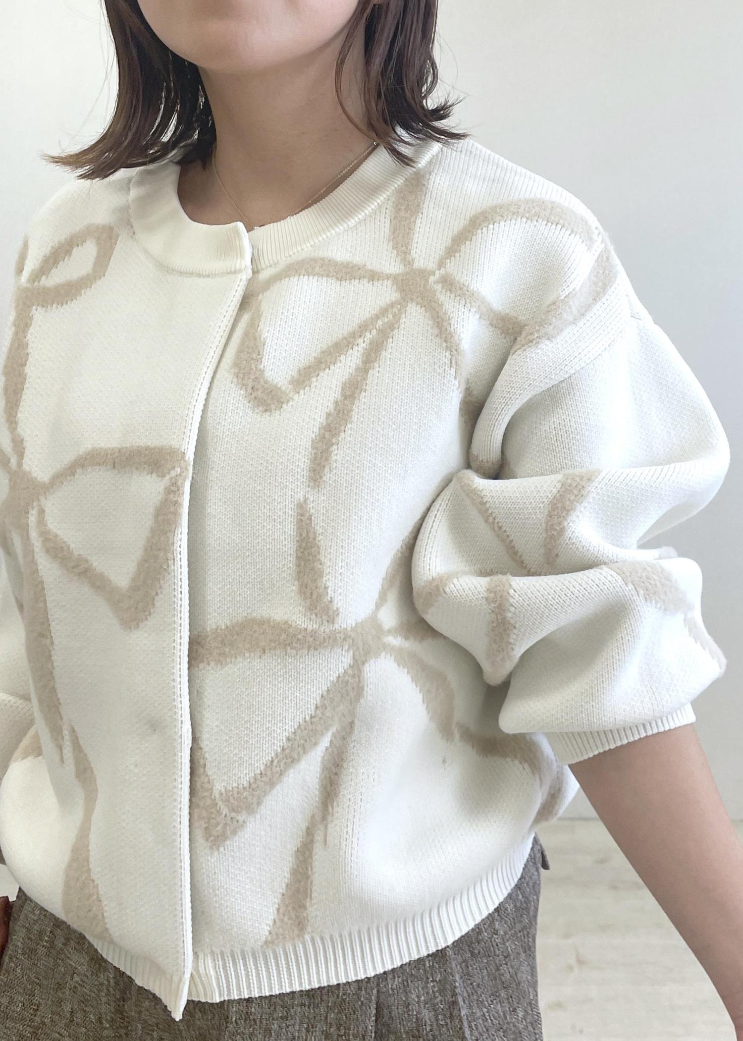 VISリボンモチーフジャガードカーディガン/イージーケアキナリ / F¥6,919レビュー150cmでFサイズ着用です。