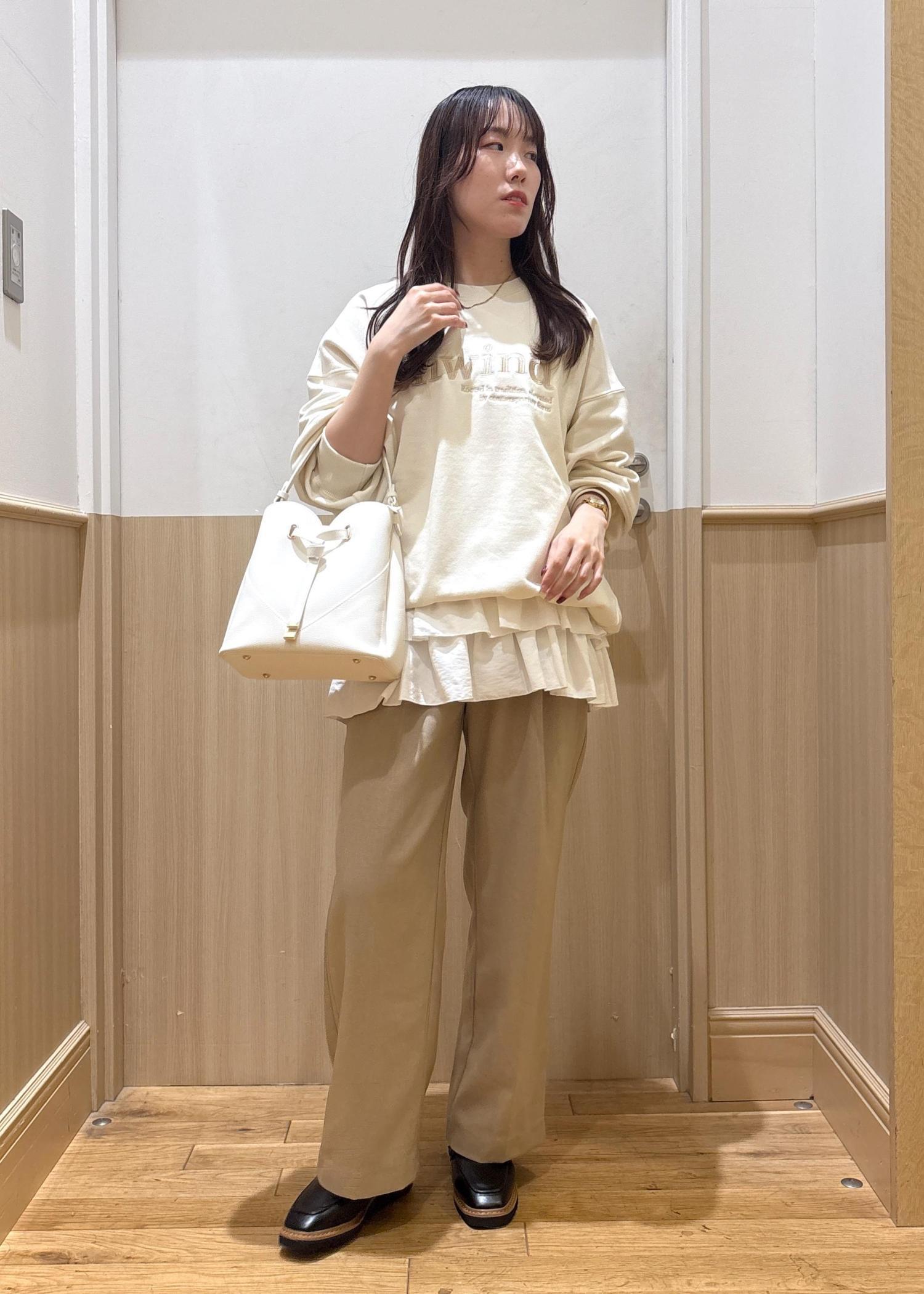 彩度低めニュートラルカラーで、落ち着きのある統一感のあるコーデに◎