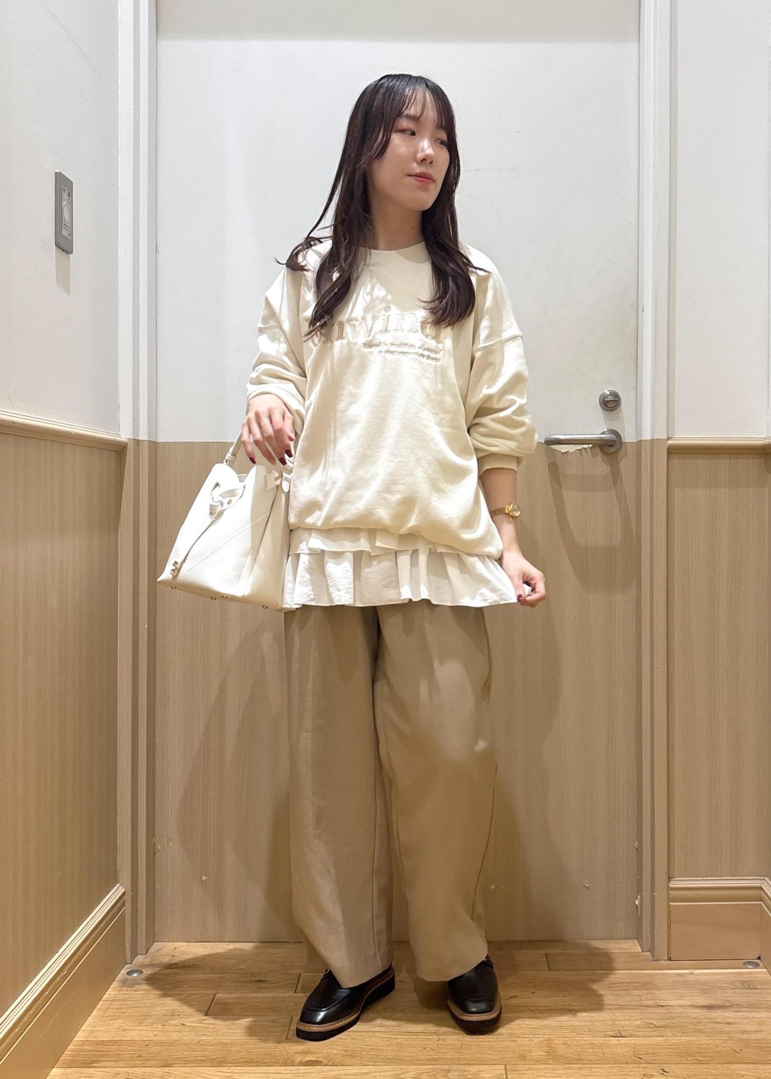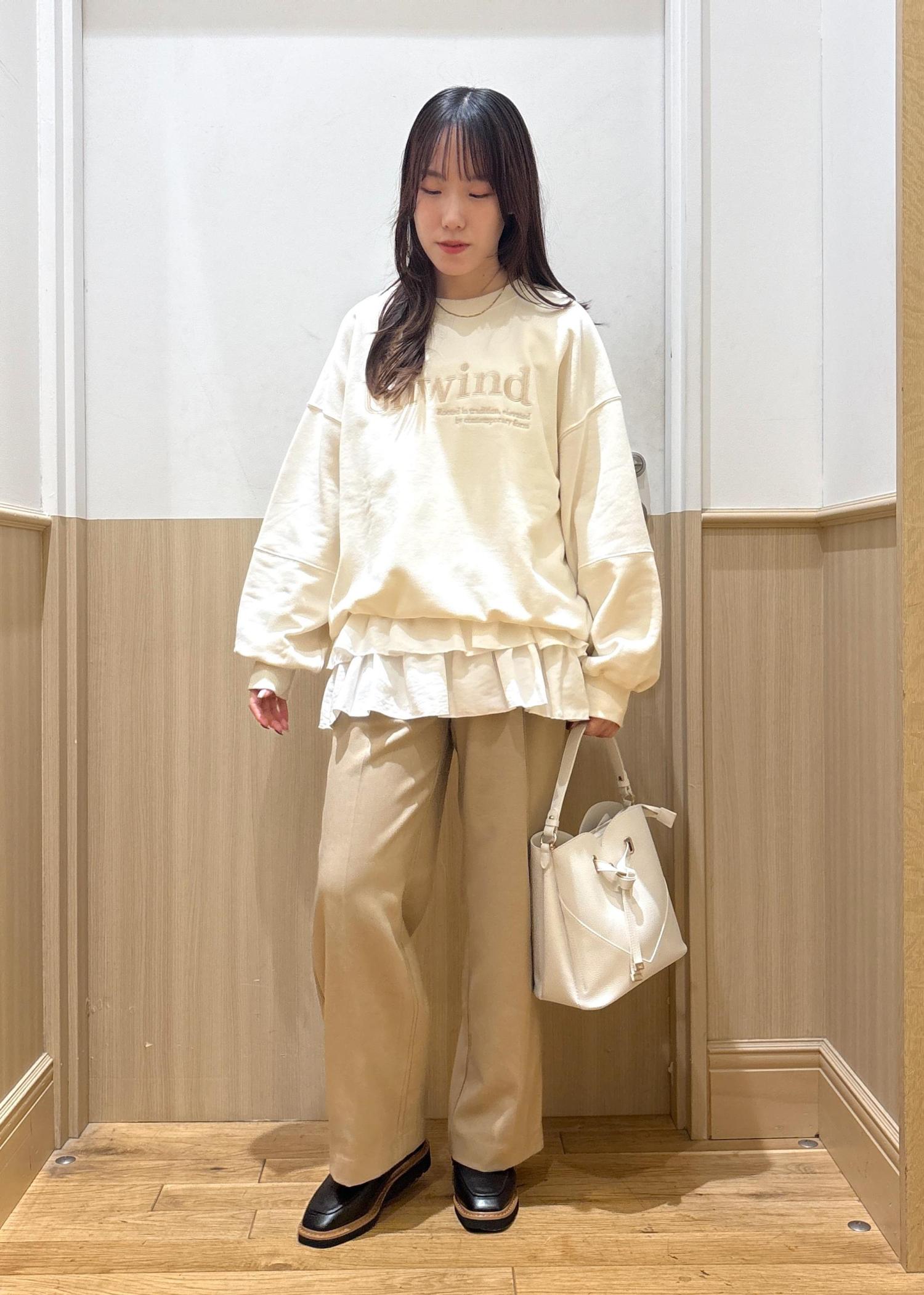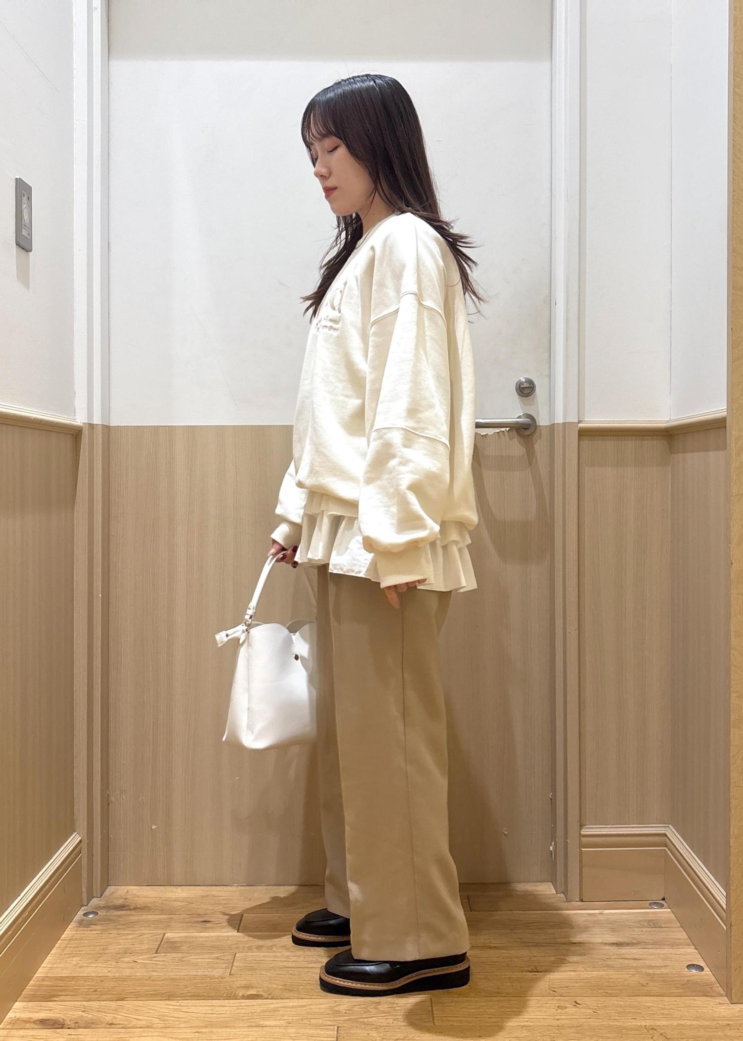 スウェットだけだと寂しかったので、フリルキャミをレイヤードして今年らしく動きを出しました!