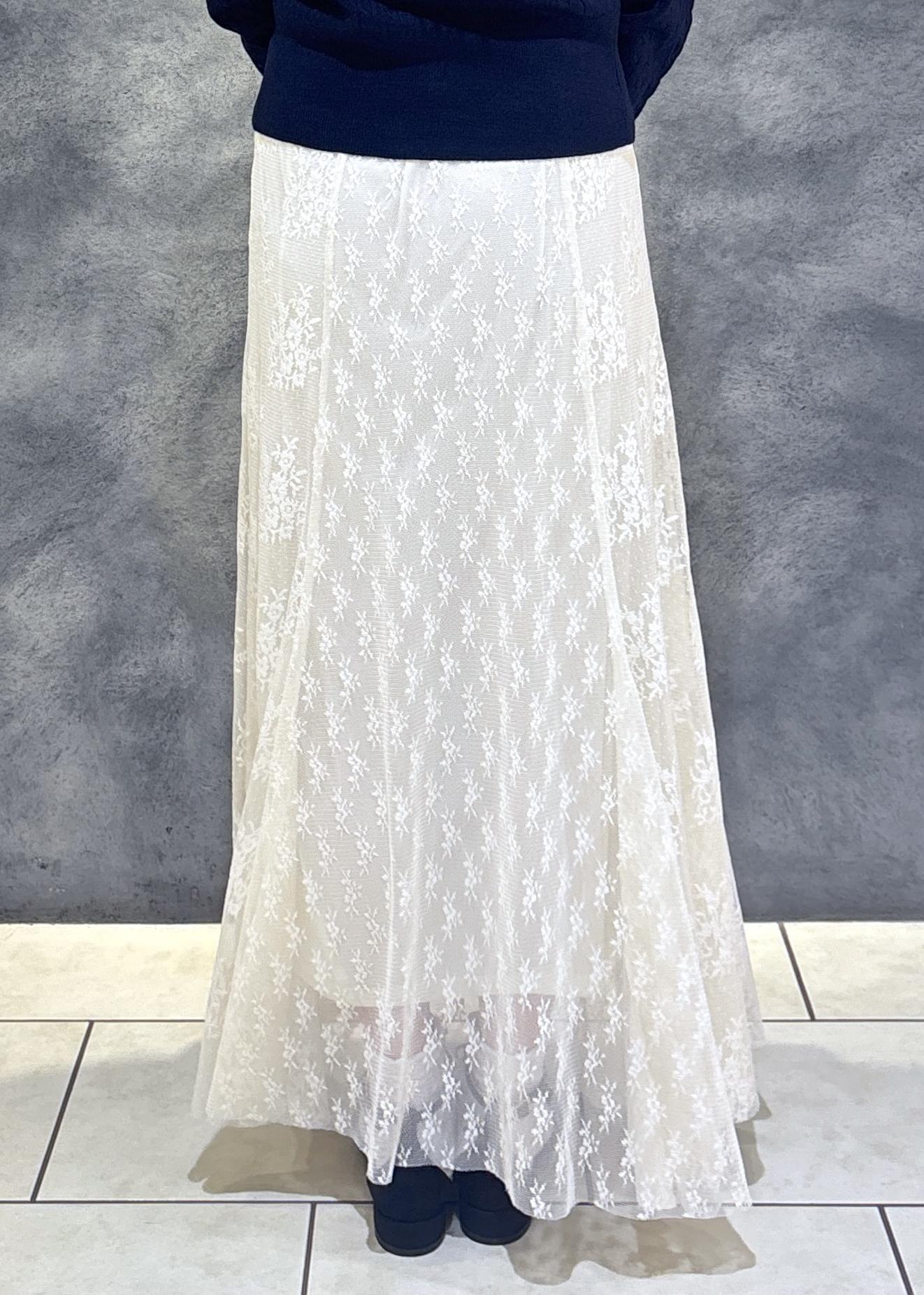 レーススカートは着るだけで華やかで女性らしい印象になります◎