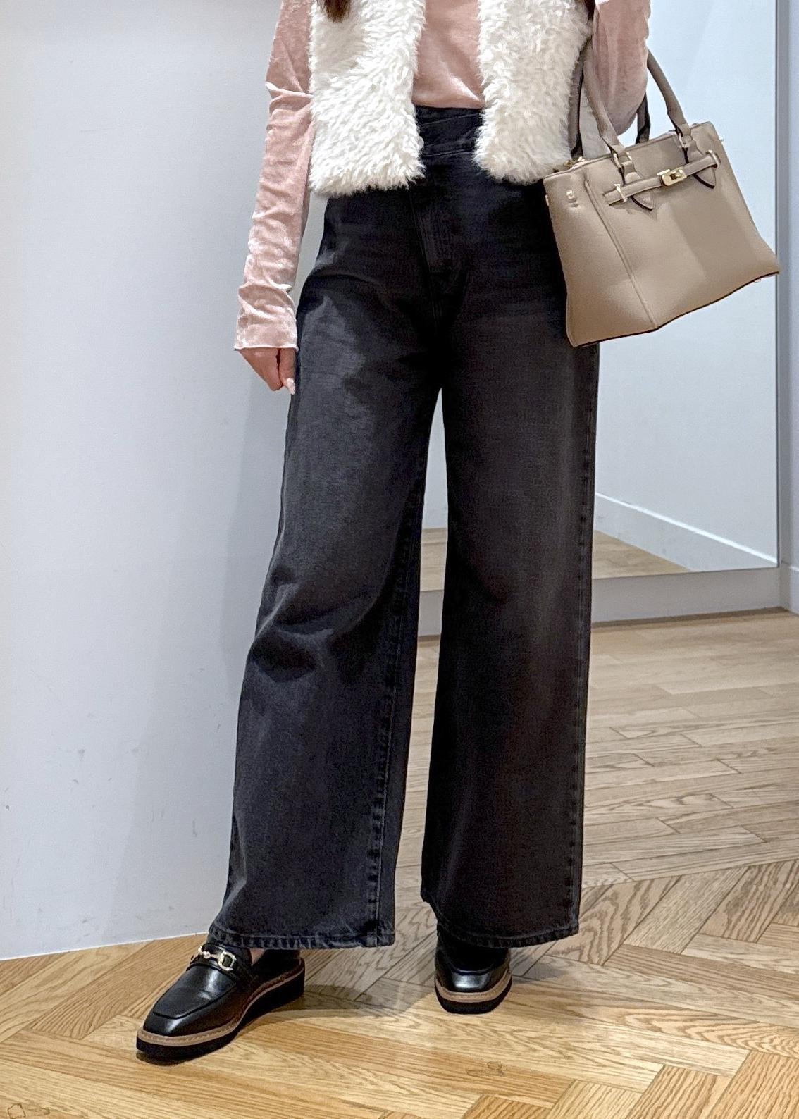 クロスベルトがポイントのストレートワイドデニムです。デニムパンツはでスタイルアップを叶えてくれます◎ -