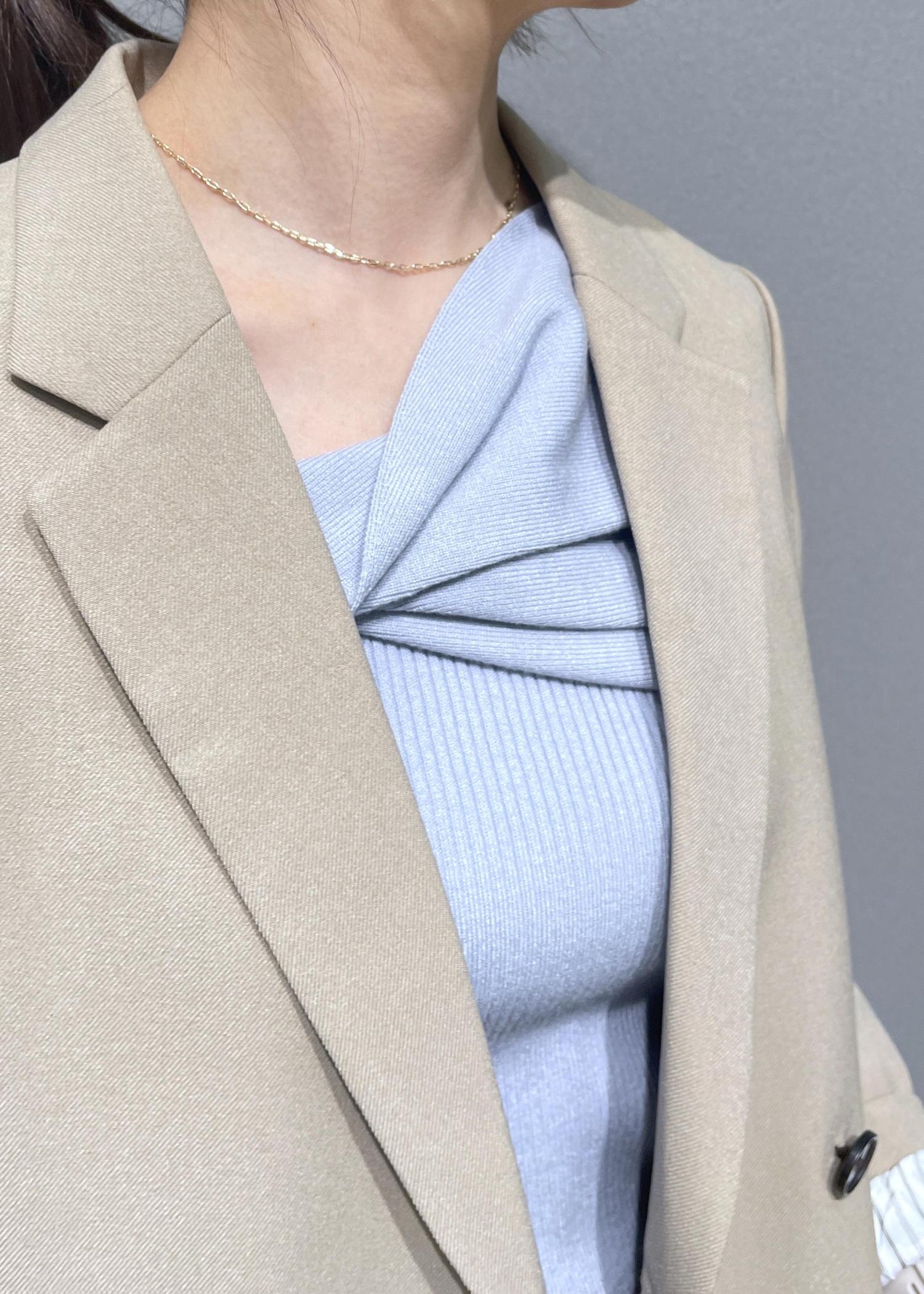 VISアシメねじれデザインリブニットサックス / F¥5,489レビュー胸元にデザイン性があるニットトップスです。