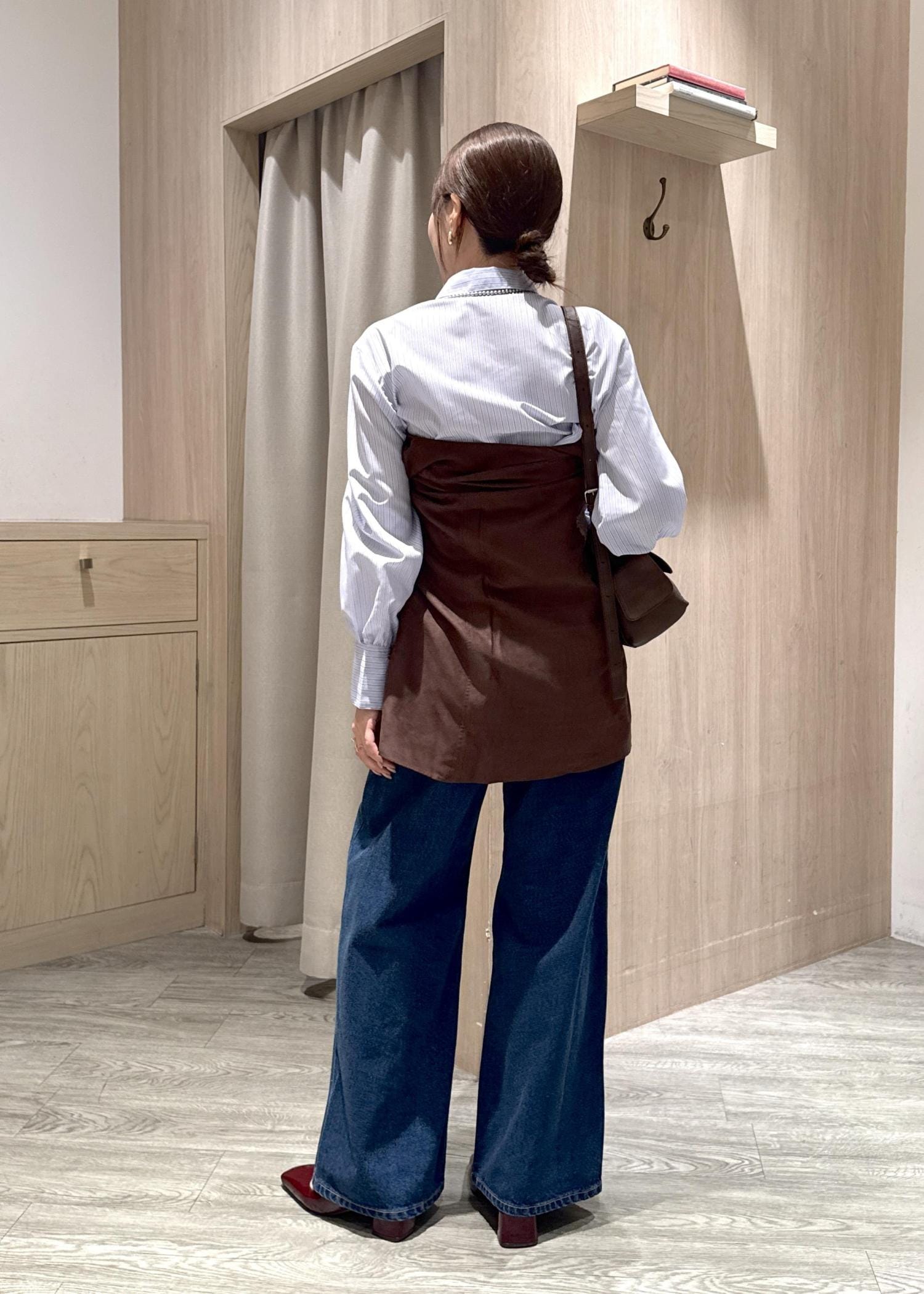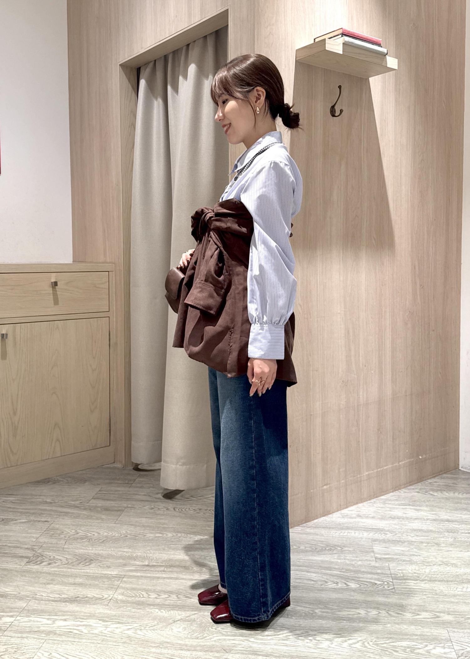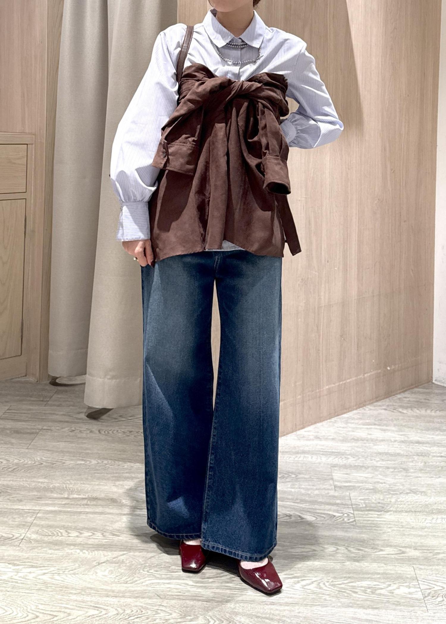 ウエスト位置が高く見え、スタイルアップが叶うシルエットです✨フレア部分が腰回りもカバーしてくれるのも嬉しいポイント! -