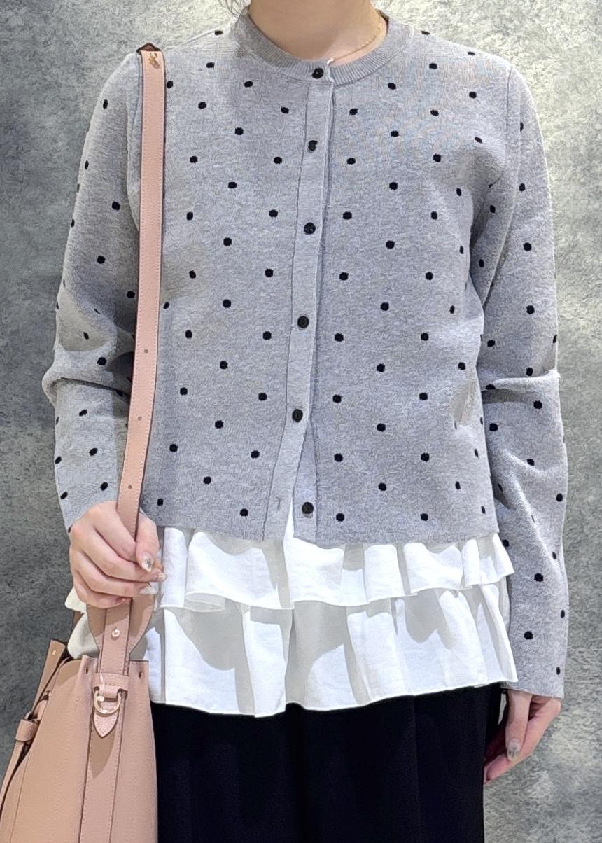 VISドットジャガードカーディガングレー系 / F¥5,929レビュー身長155cmでも短めに着れるので、すっきりした印象になります!