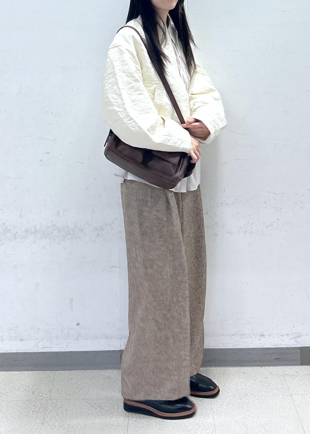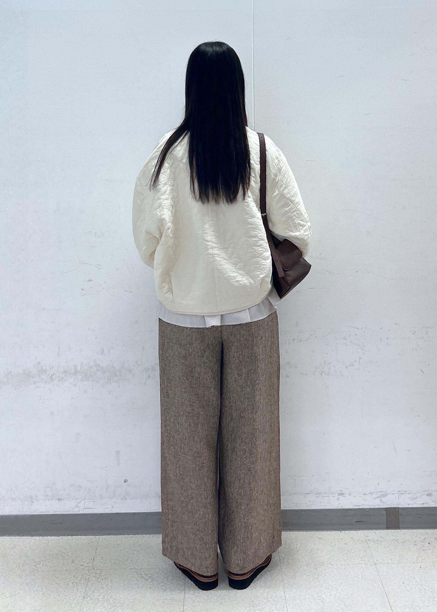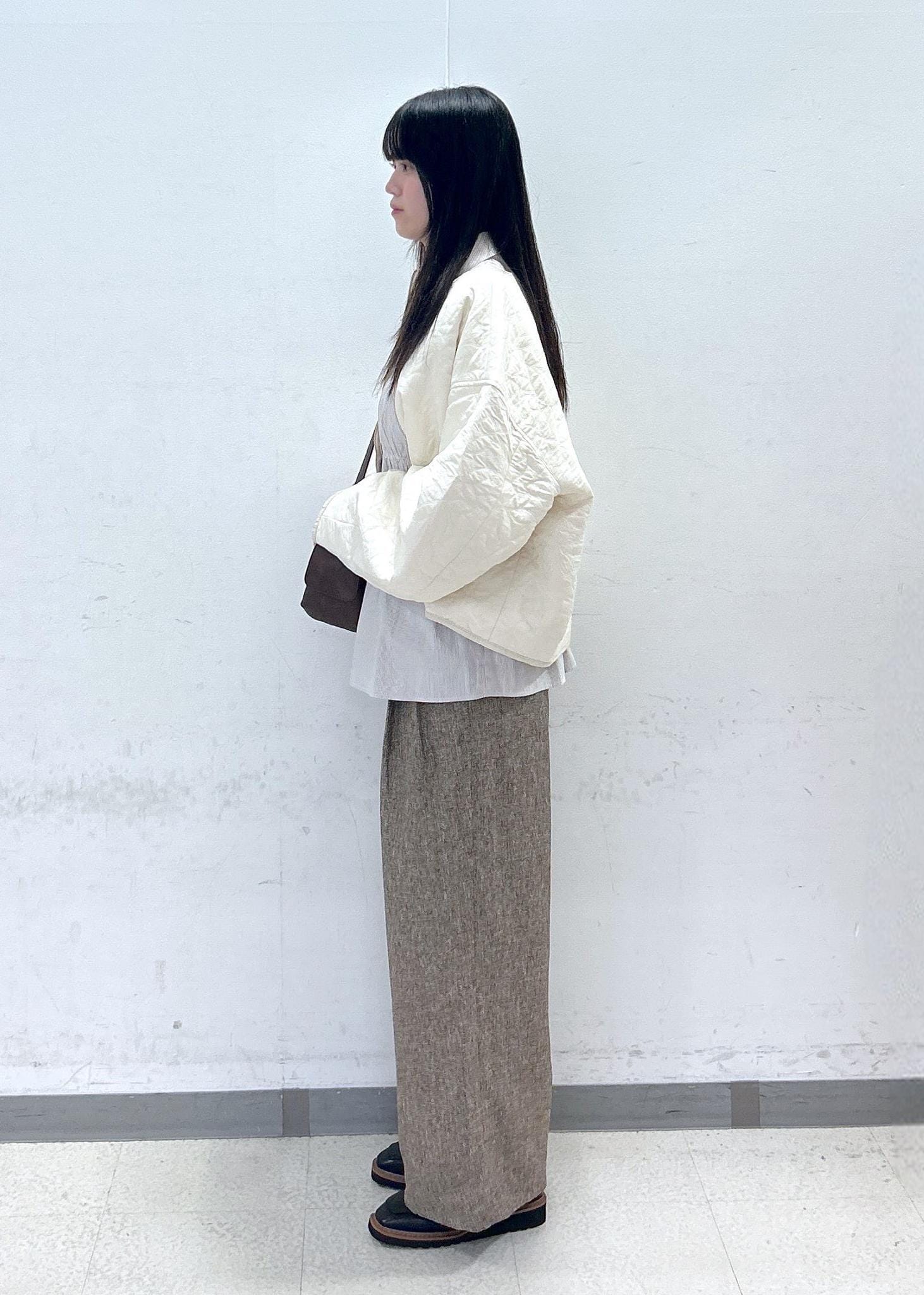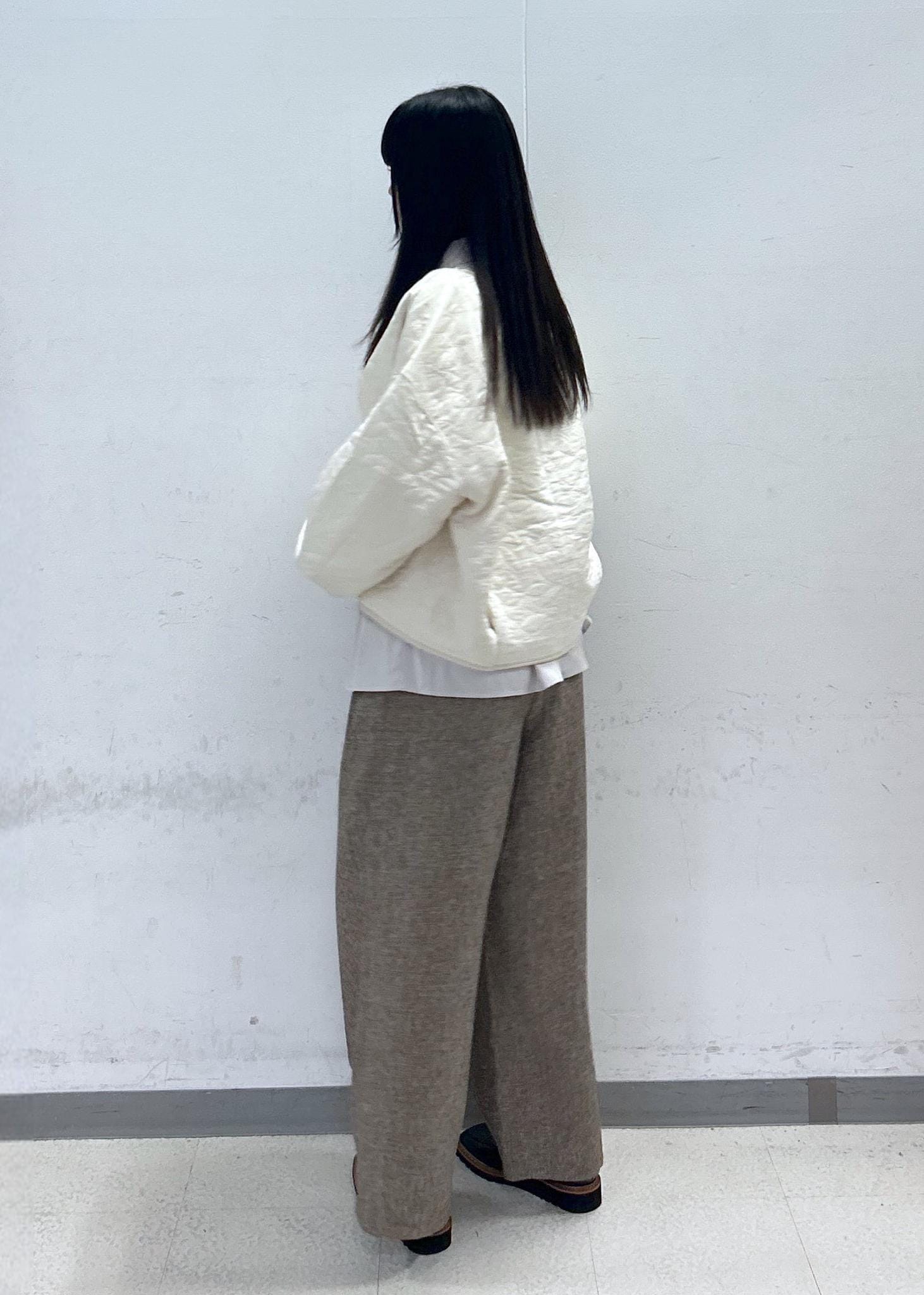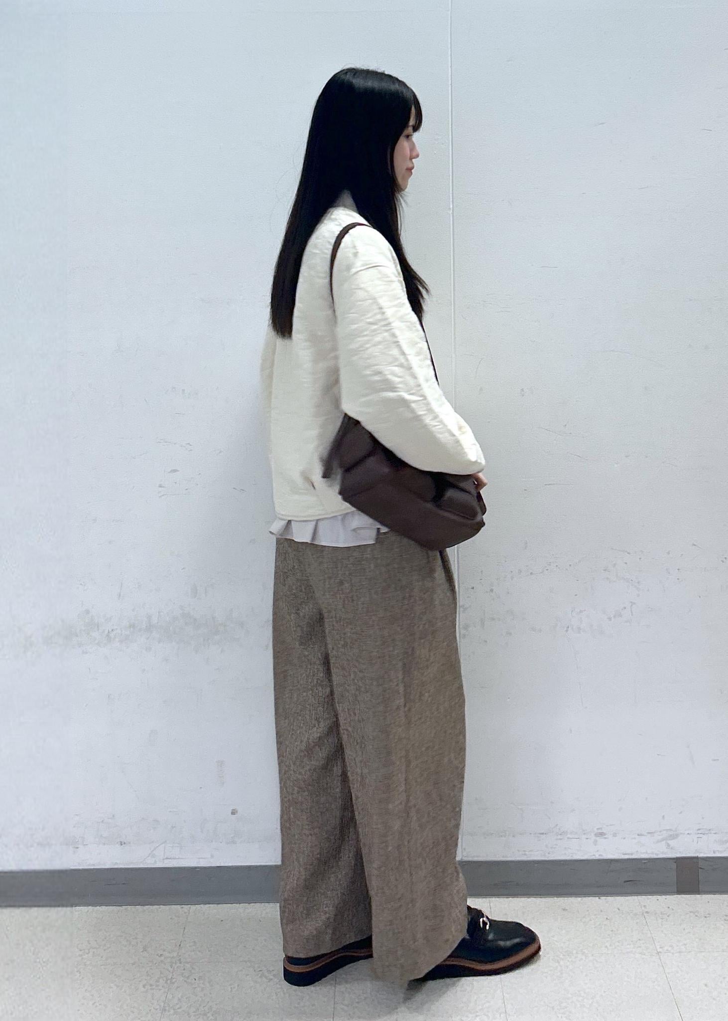 ノーカラーなのでレイヤードを楽しみやすいアイテムです。ハイネックのニットやショールカラーのシャツなどで襟を見せてもかわいいです。 -