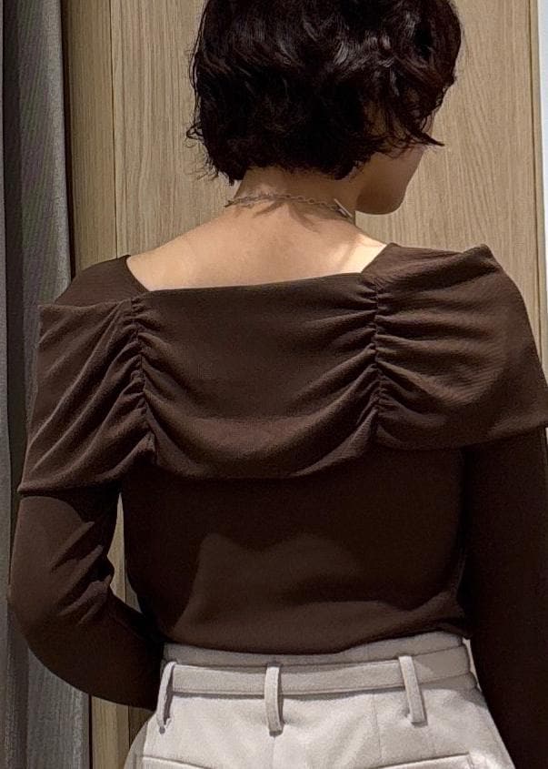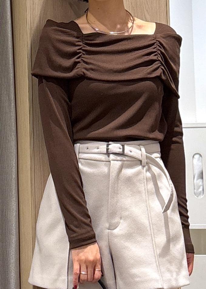 VISテレコオフショルダーロングスリーブプルオーバーダークブラウン / F¥3,072レビューすっきりシルエットのオフショル風トップス。