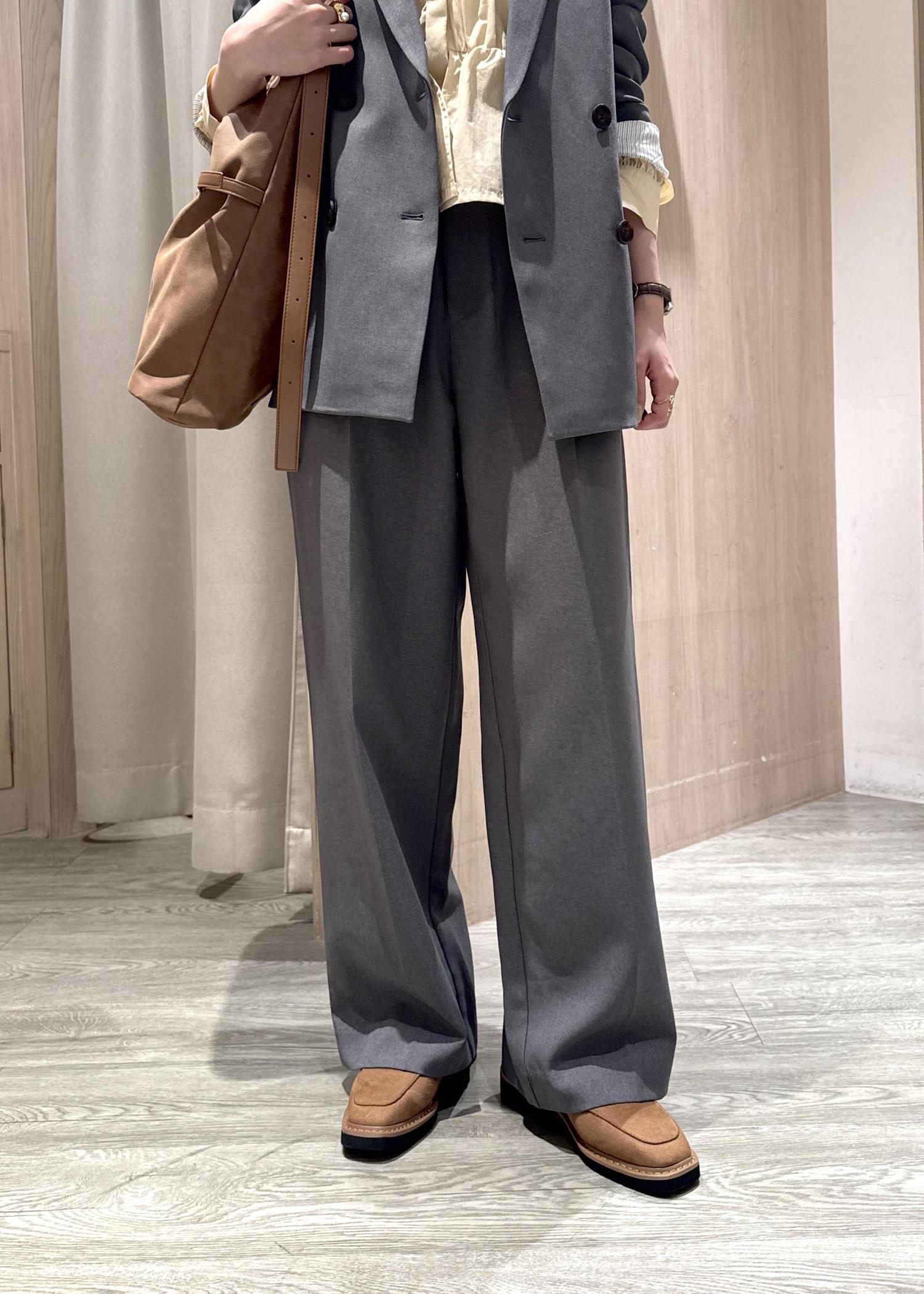 VIS【美easy】ウーリッシュワンタックワイドパンツ【セットアップ対応/洗える】グレー / S¥6,589レビュー身長157cm / Sサイズ着用 / 両サイドのボタンでウエストを縮めています。
