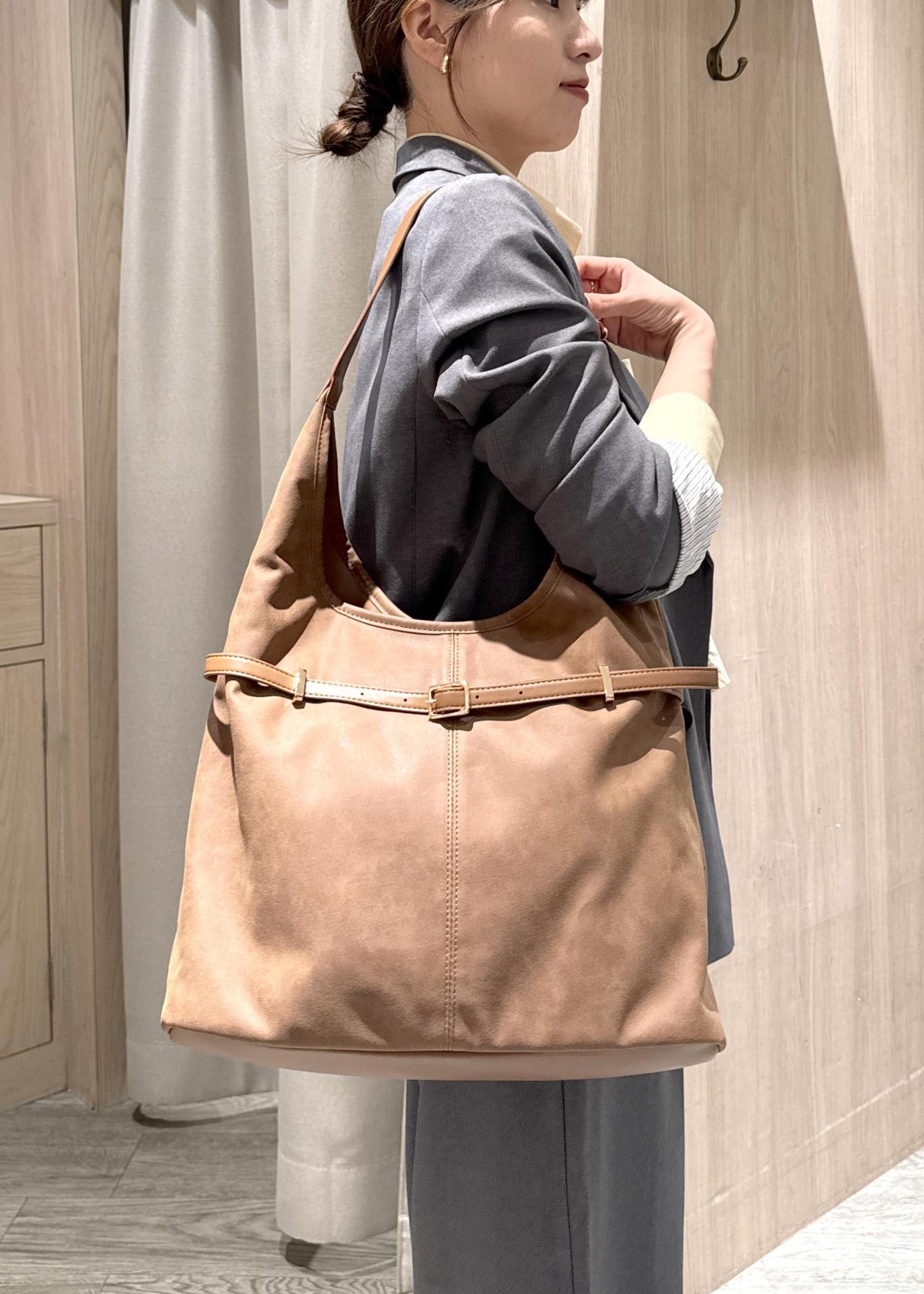 VIS【A4収納】フロントベルトソフトショルダーバッグダークブラウン / F¥5,535レビューA4や13インチのPCも楽々入るサイズ感です!また、ベルトも調節できるため、斜めがけも肩掛けもどちらも可能なのも嬉しいポイント!スエード素材なので、秋を感じさせてくれます!◎