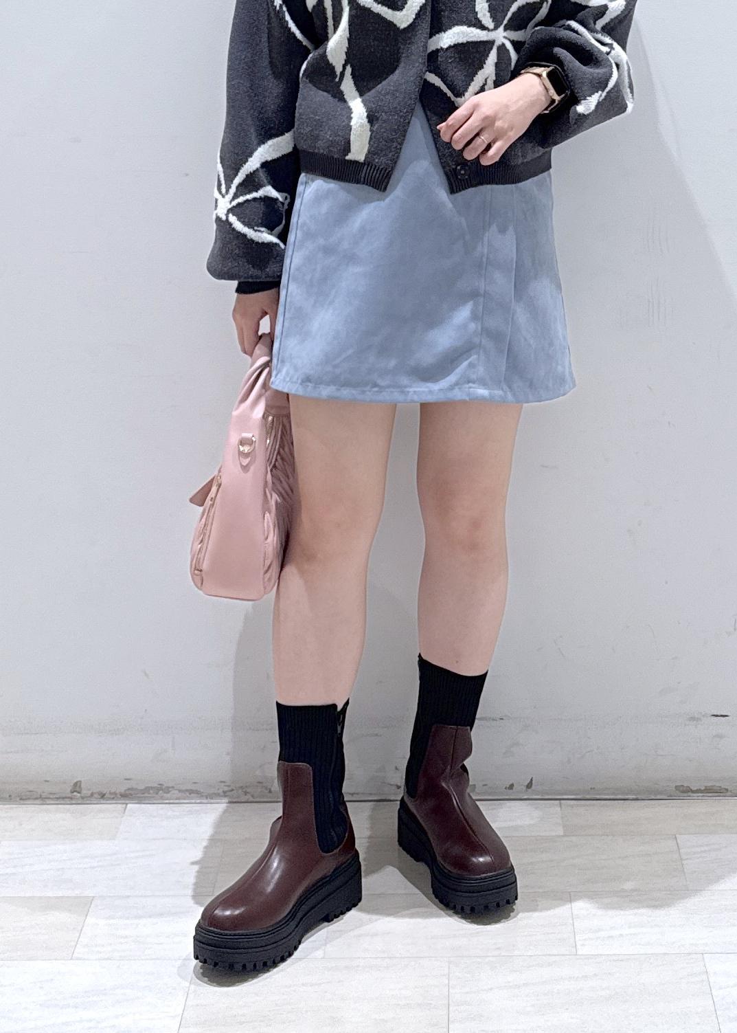 たまにはミニスカートではありますが、少し長めのブーツと合わせることで脚も細見えして気になりません!