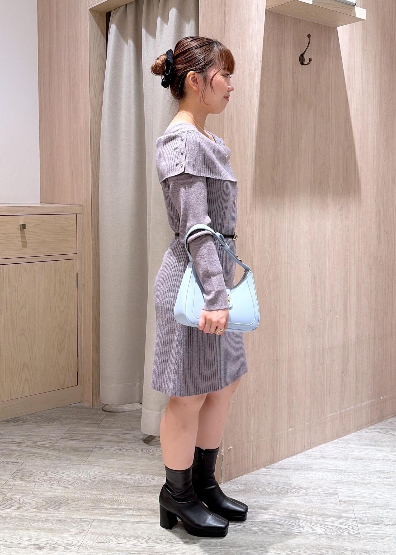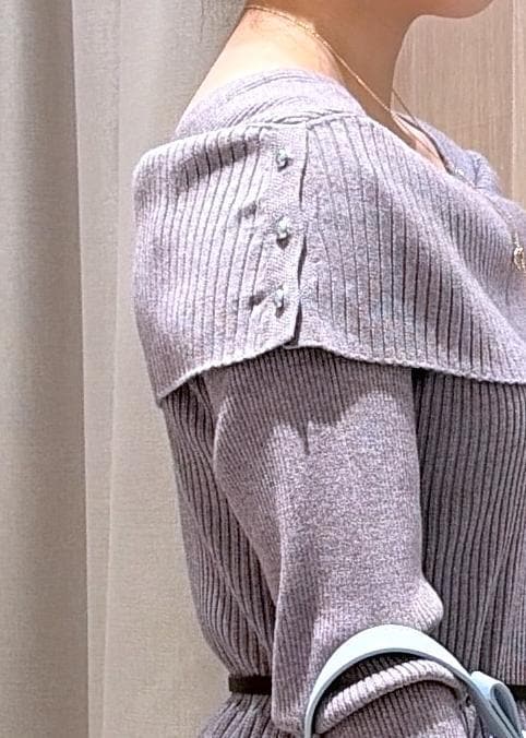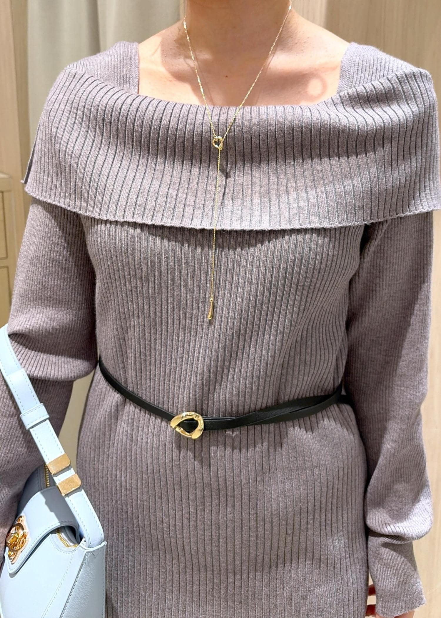 VISアシメオフショルリブニット美シルエットワンピース/着丈が選べるグレー / FS¥8,899レビュー人気のオフショルトップスのワンピースバージョンです!着丈が選べます◎