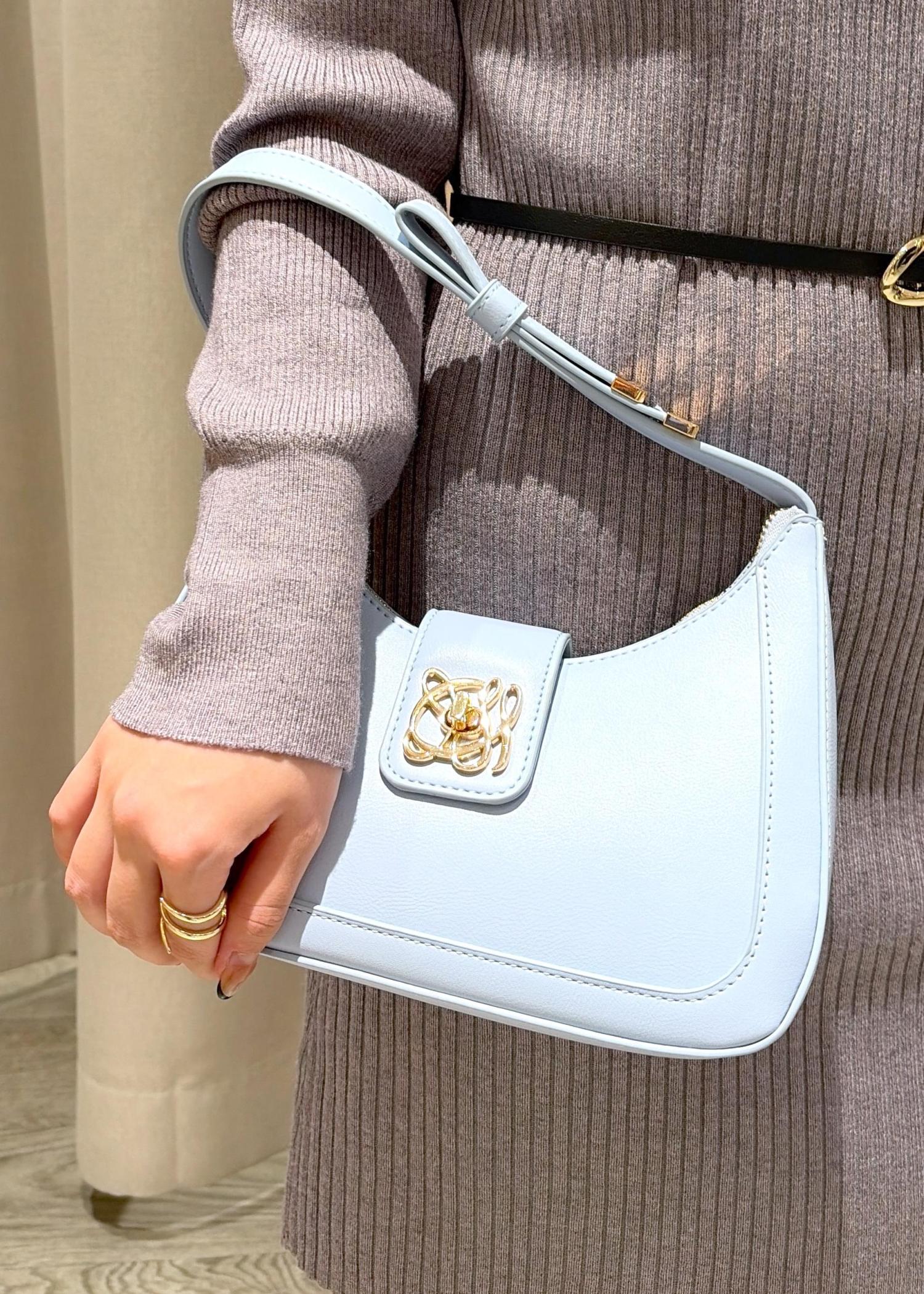 VIS【新色追加】【180℃美人見え】ハンドルリボンワンショルダーバッグサックス / F¥5,929レビュー高見えするデザインです♪