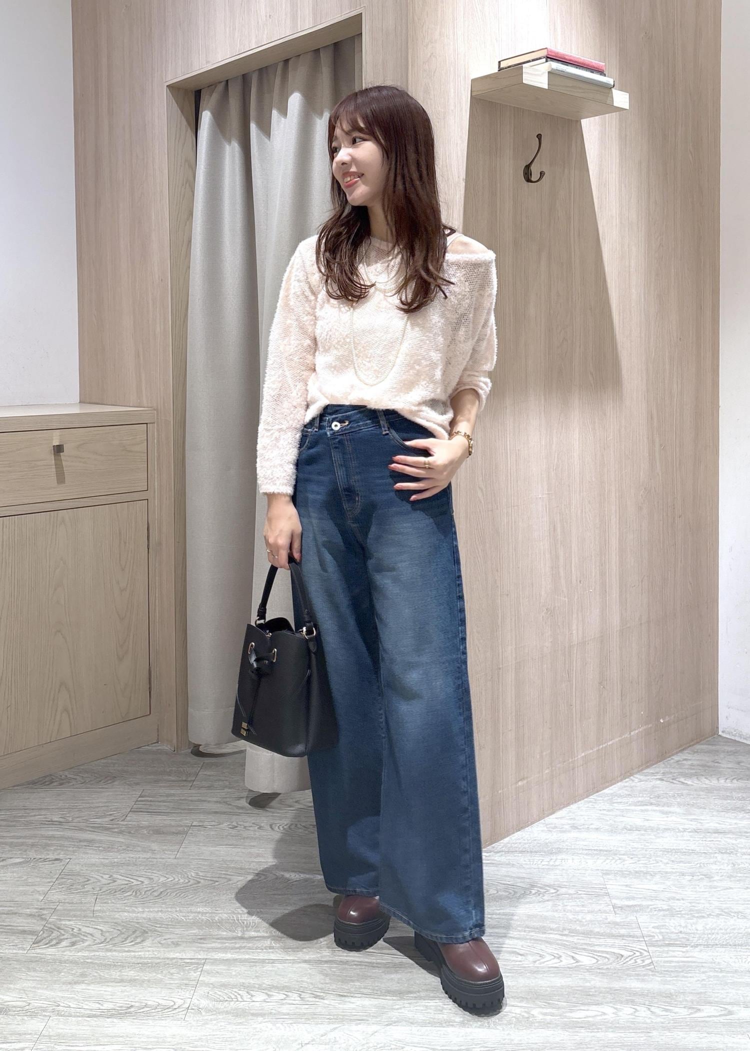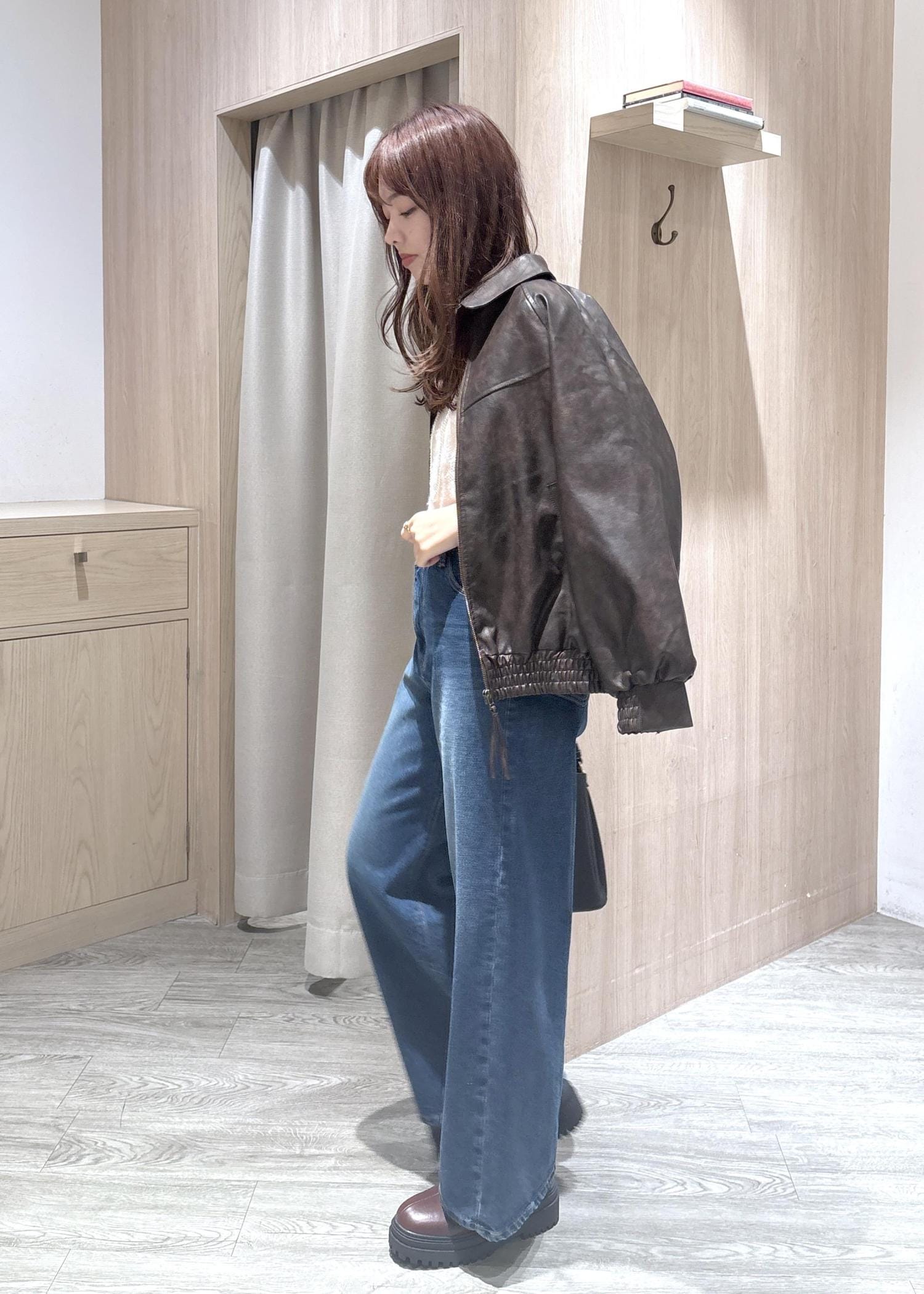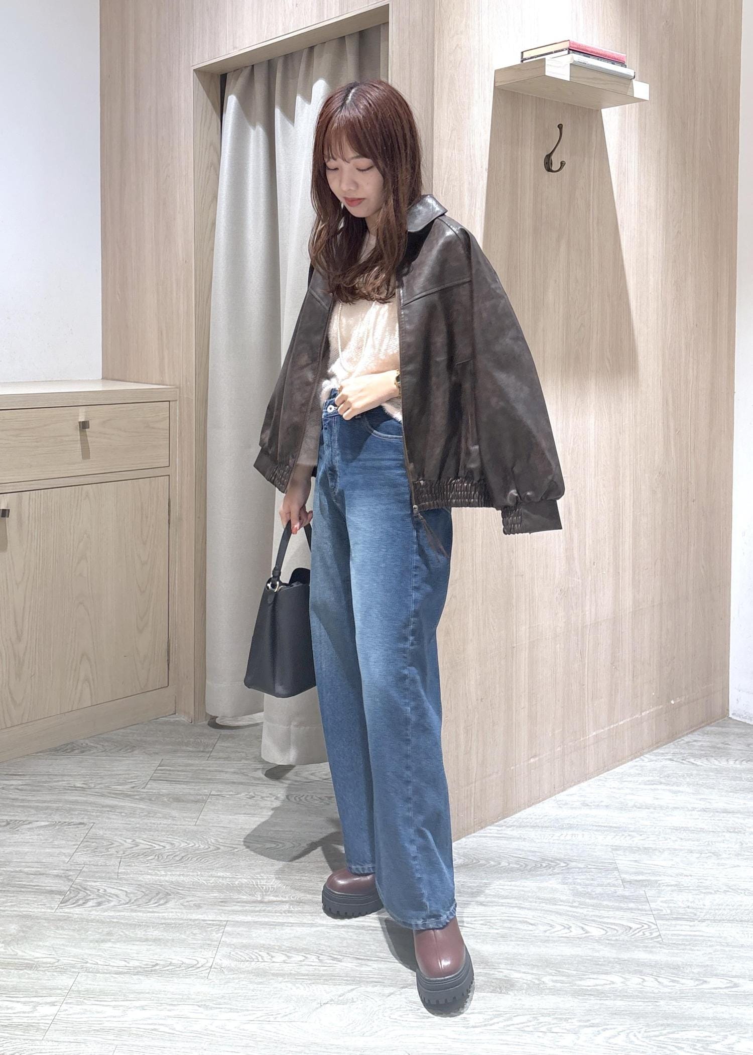 ジャケットはメンズライク見えしますが、丸いフォルムが女性らしさもだしてくれます!