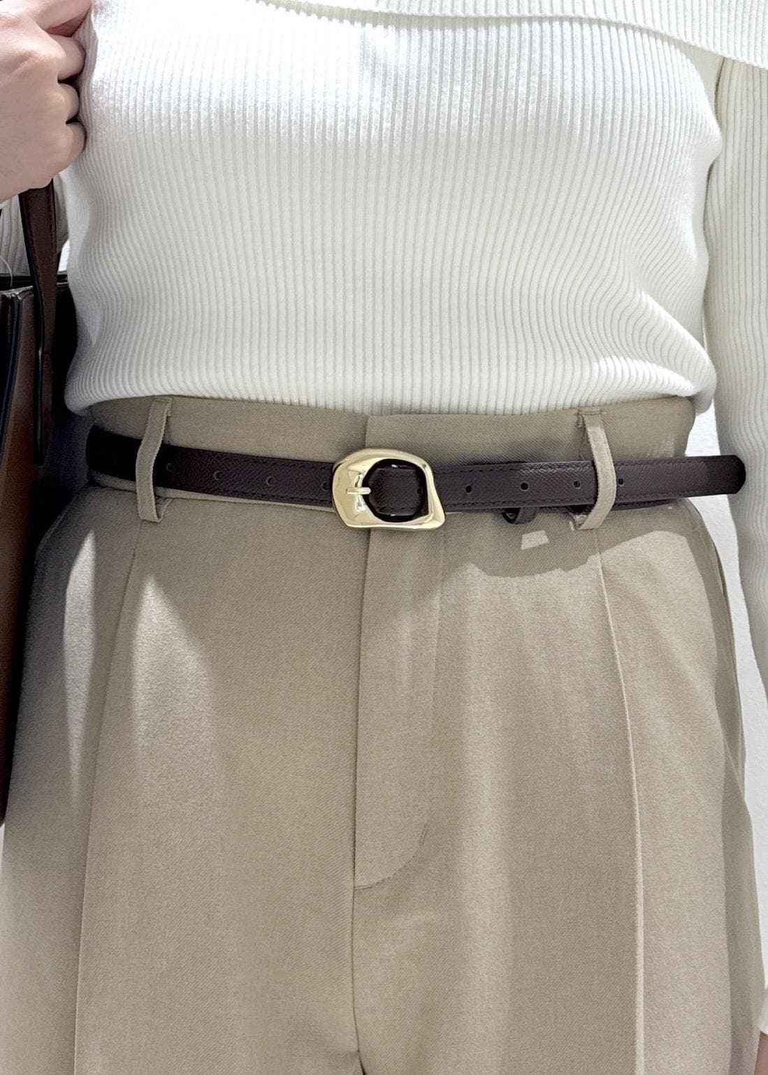 VIS18mm幅ニュアンス変形ダークブラウン / F¥2,409レビュー私自身もベルトを探していてこちらを購入しました!付ける度にゴールドのメタルがとてもお洒落です。太すぎず、細すぎずなのでスカートやパンツ、お仕事用にも使いやすいです。長さも長くなかったのでベルトがだらんっとなる感じもないのでオススメですよ♪