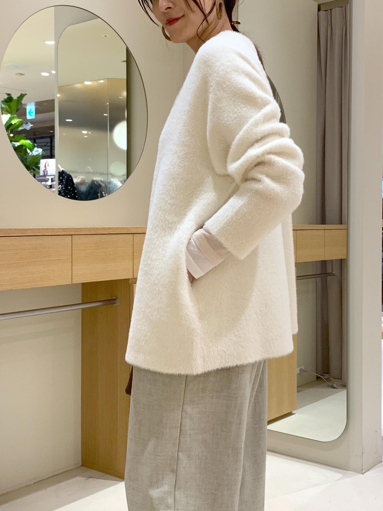 VIS接結メタルボタンミニフェザーニットコートオフホワイト / F¥9,999レビューとても柔らかくモチモチしていて、肌触りが気持ちいいです。伸縮性もあり、尚且つポケット付きなのもありがたい!カーディガンだと薄いし、コートだとまだ早い時期にちょうど間の肉厚感なので使いやすいですよ!