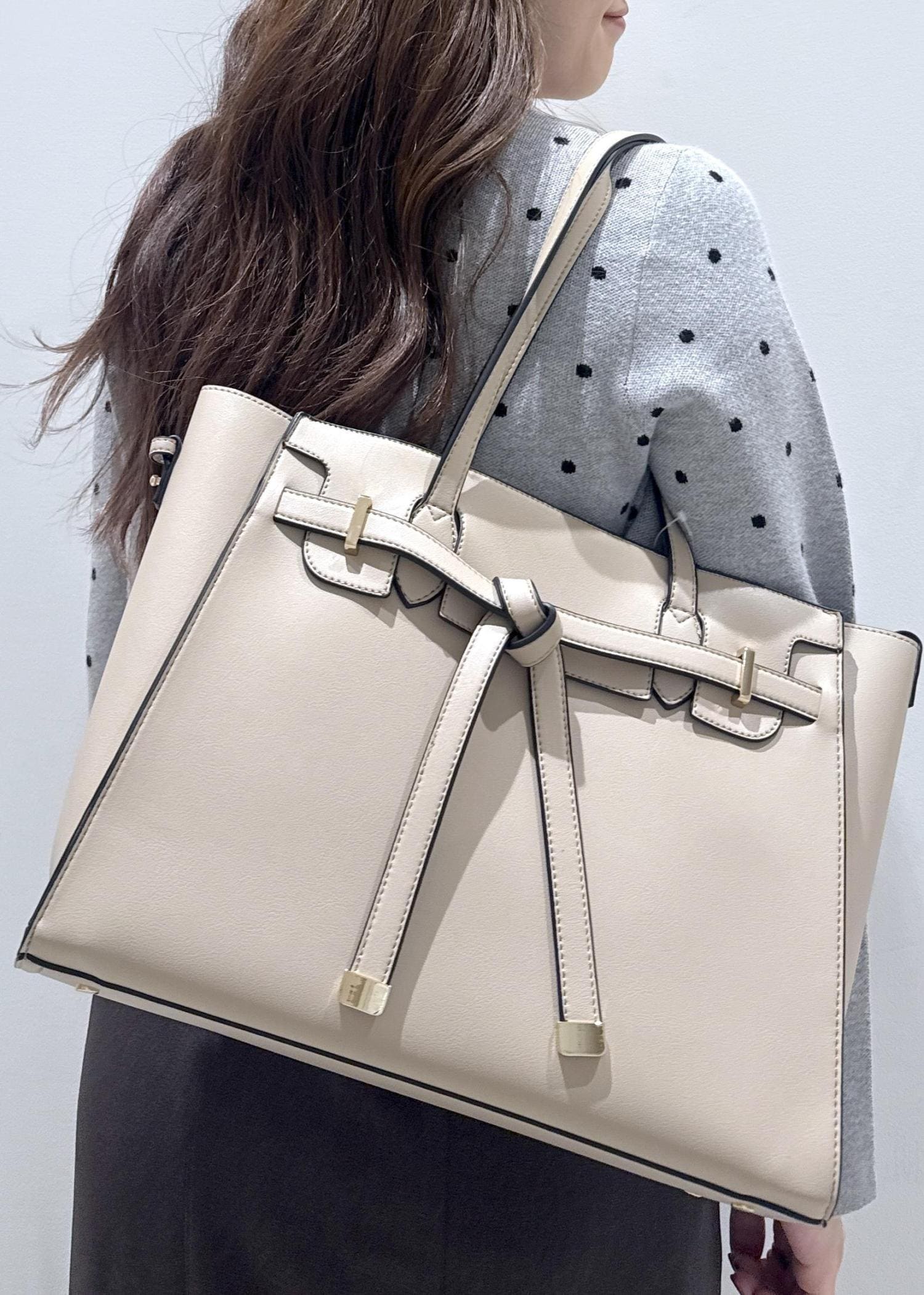 VIS【新色追加】【A4収納】フラップタイトートバッグベージュ系 / F¥7,909レビューリボン付きのトートバッグ⭐︎見た目が可愛いのはもちろん、ファスナー付きのバッグで内側にポケットが付いており、物もたくさん入ります!大きさ的にお仕事用で使えるタイプなので、A4サイズのノートやファイル、13インチのノートパソコンやiPadが入ります。