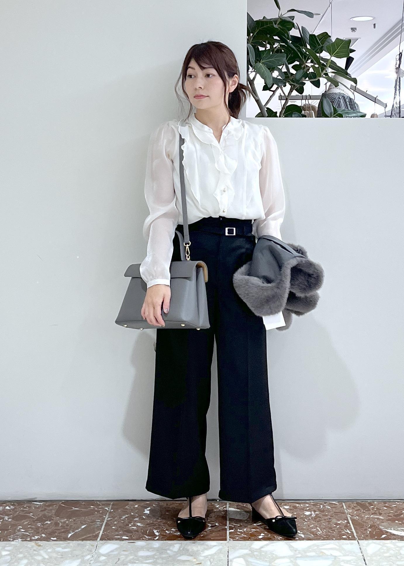VISベルトディテールタックワイドパンツ/イージーケアブラック / S¥6,589レビューウエストベルト付きのサラッとしたパンツです。ワイドパンツですが、サラッとした生地なのでストンと落ちる生地でキレイ目として履けます。少しハイウェストなのでスタイルアップして見えます。