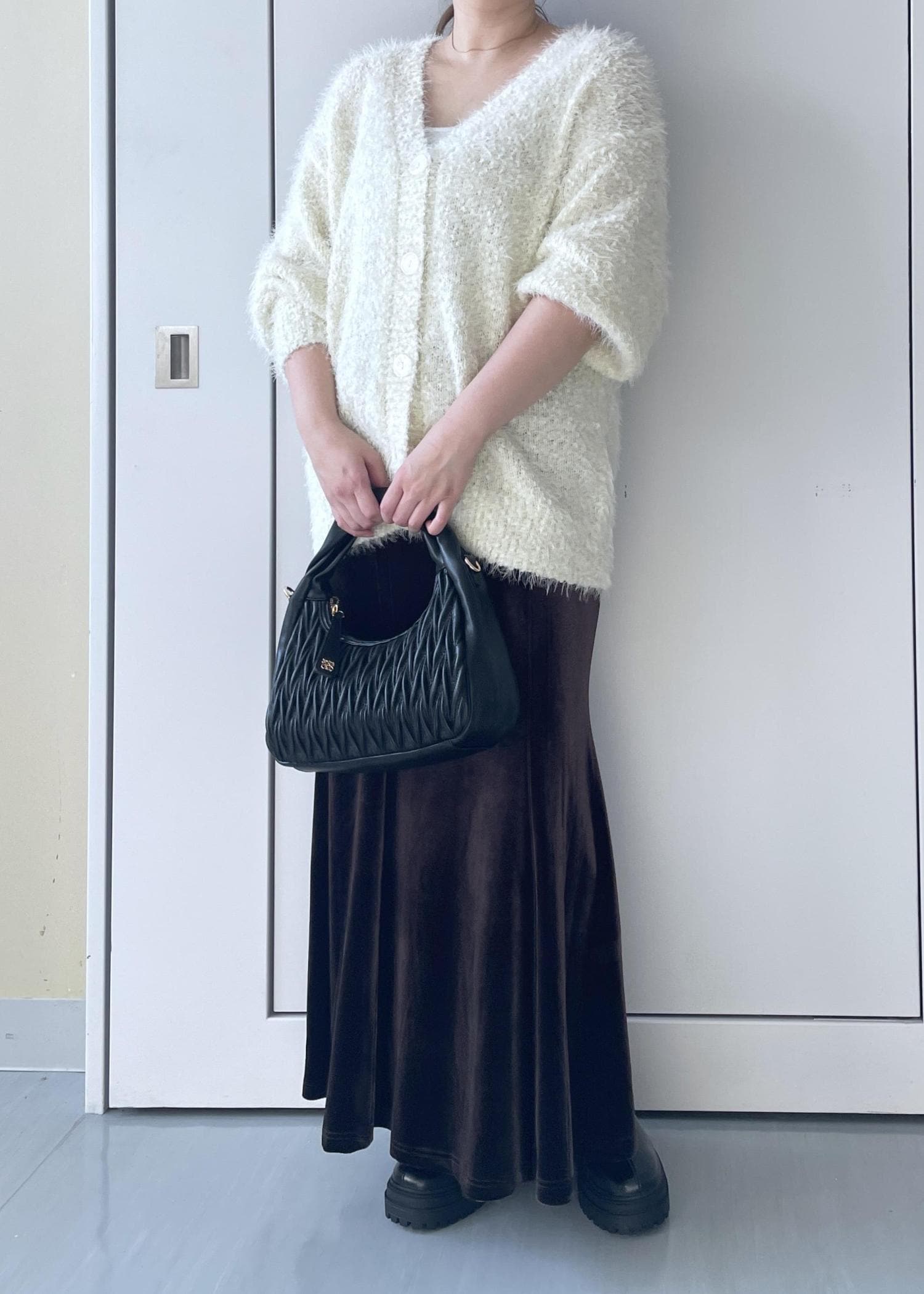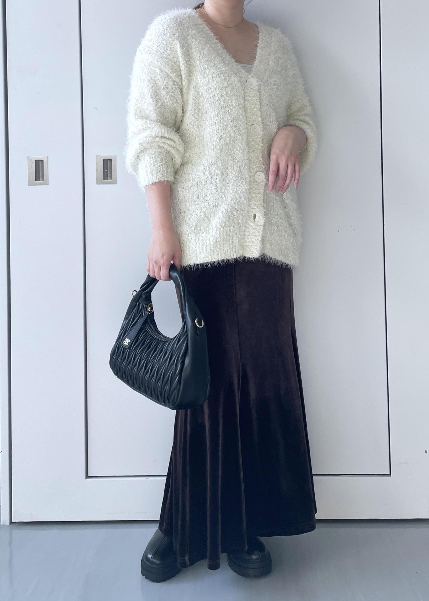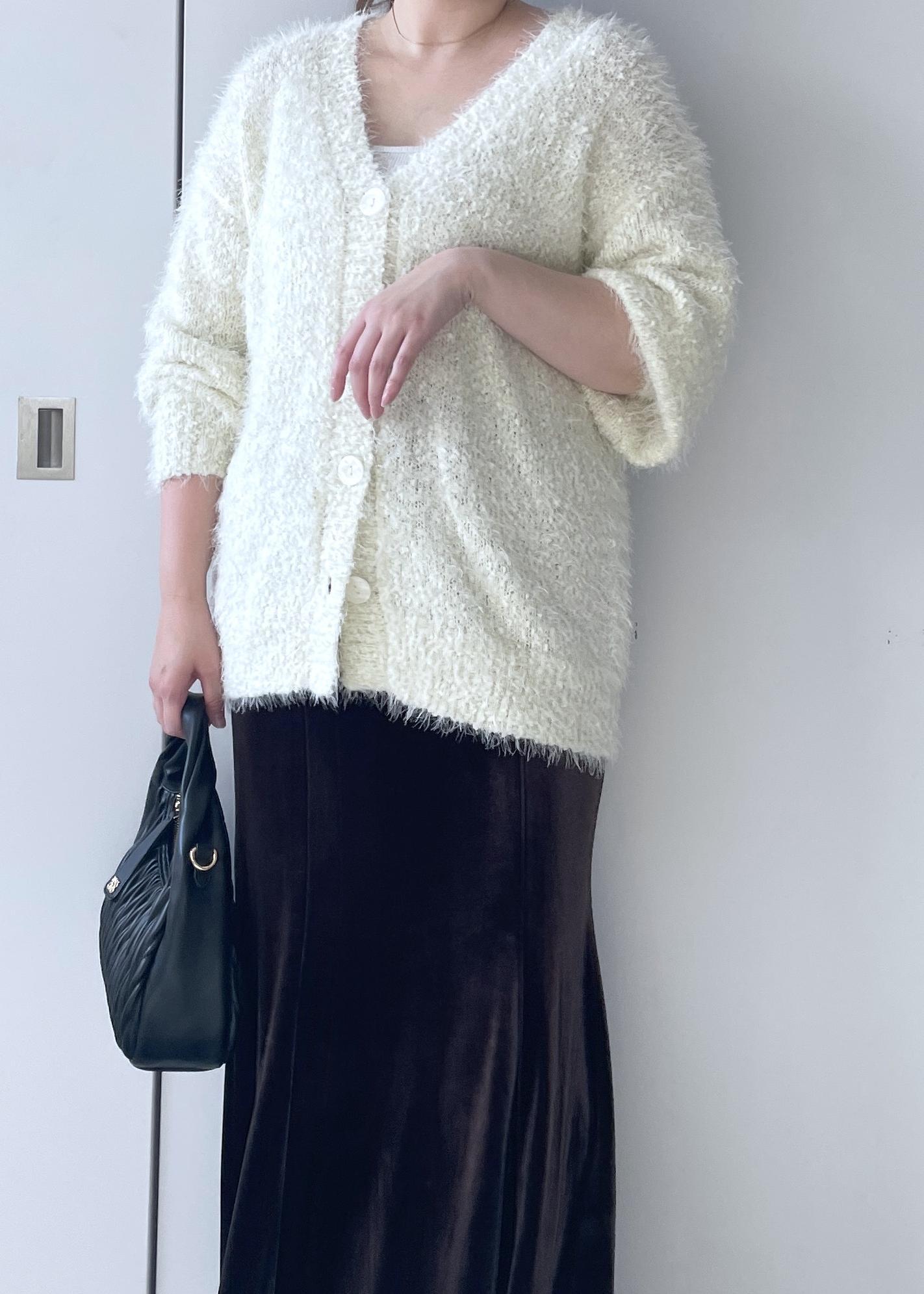 ふわふわ素材がかわいいフェザーニットカーディガン♡