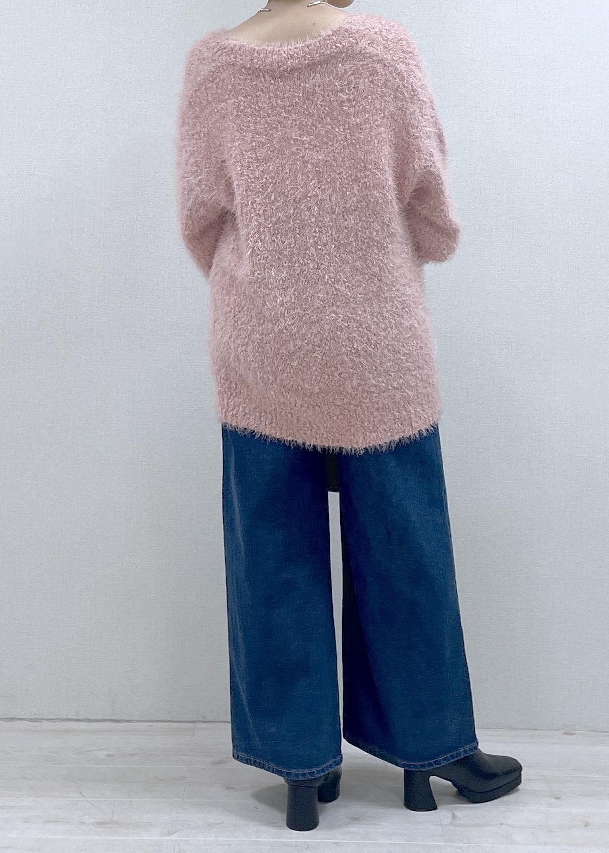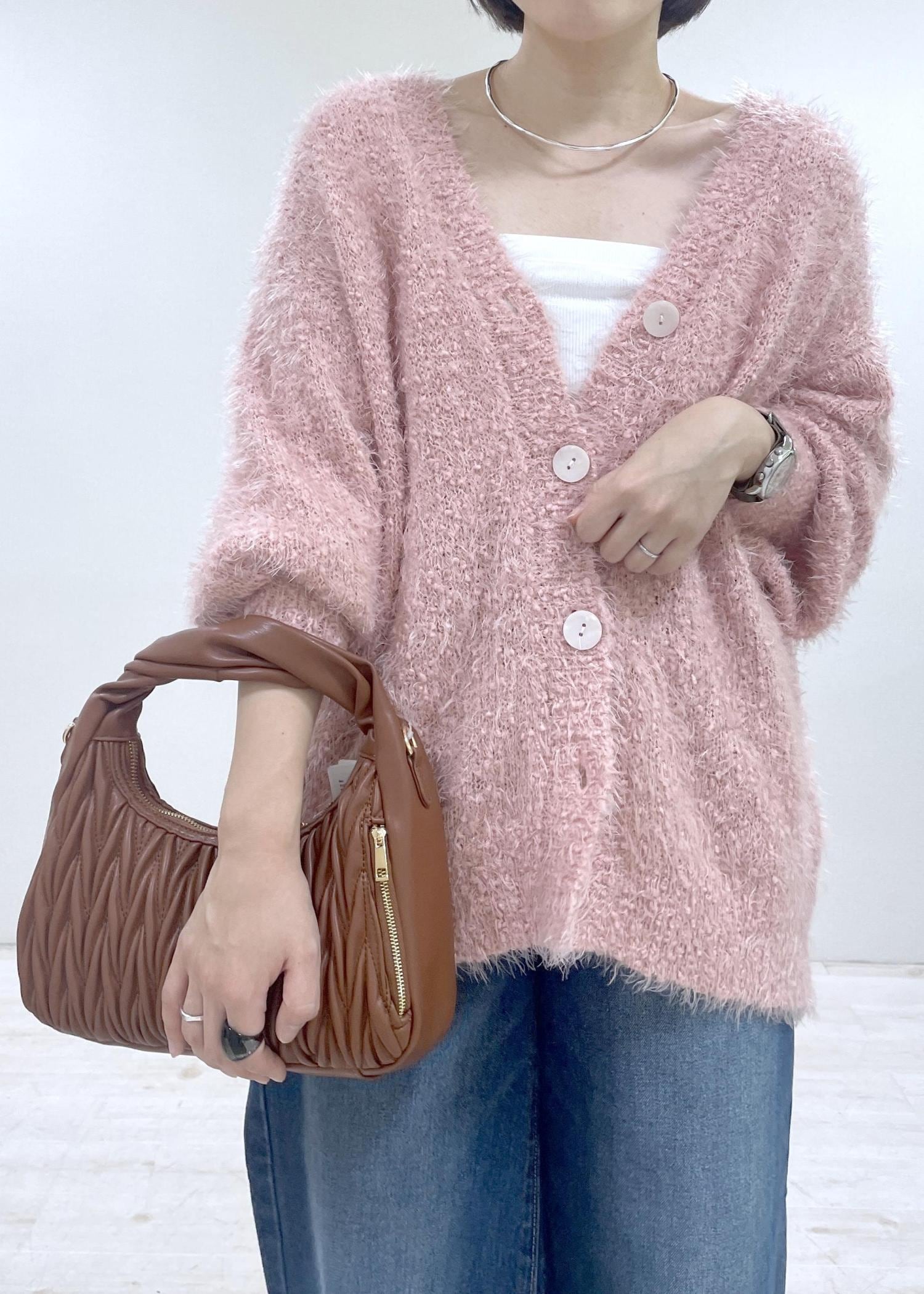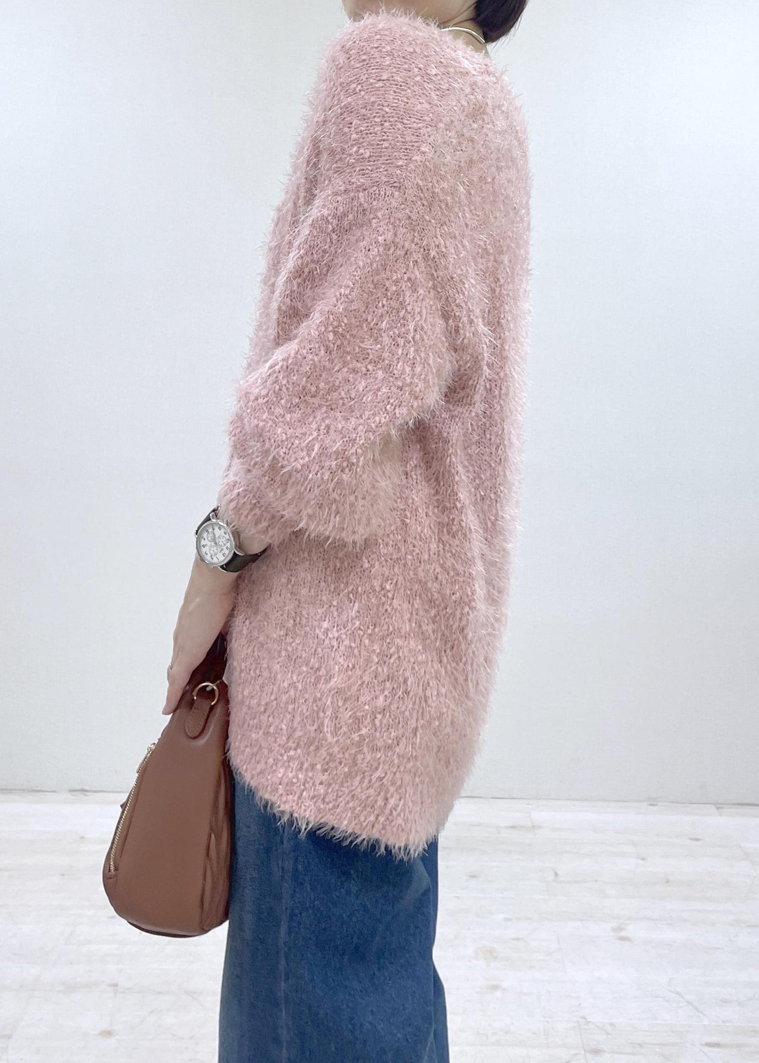 VISポップコーンヤーンラメフェザーニットカーディガン/WEB限定FSサイズピンク / F¥5,271レビュー全体的にゆるっとしており、着丈もお尻がすっぽり隠れる長めの丈です。
