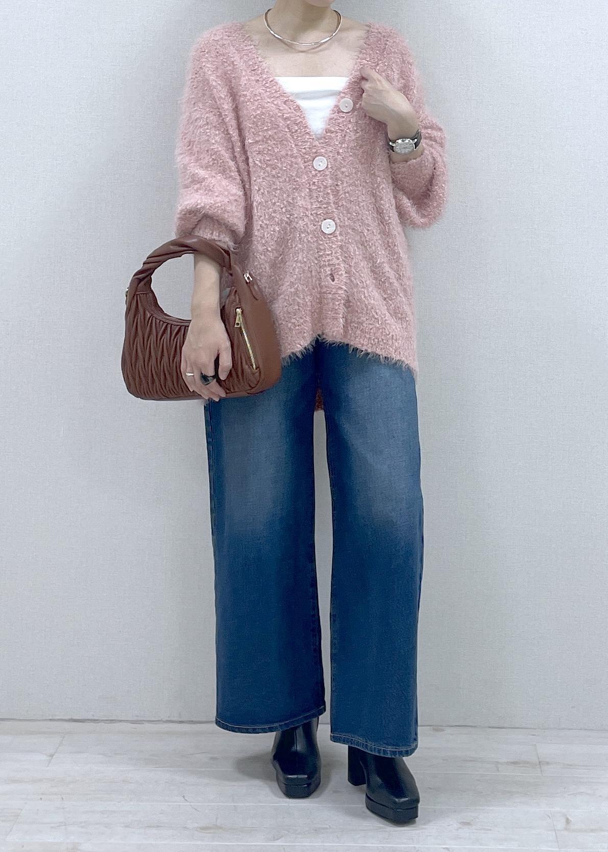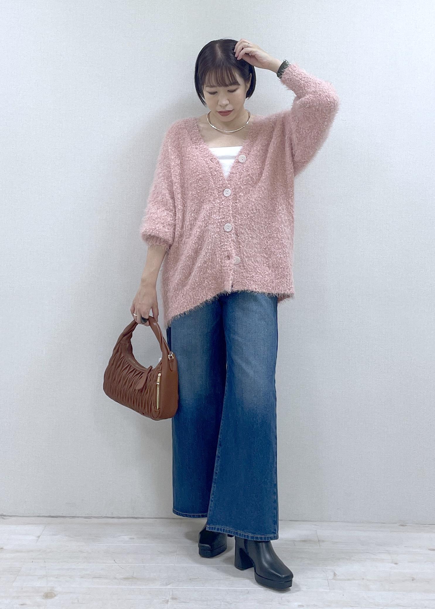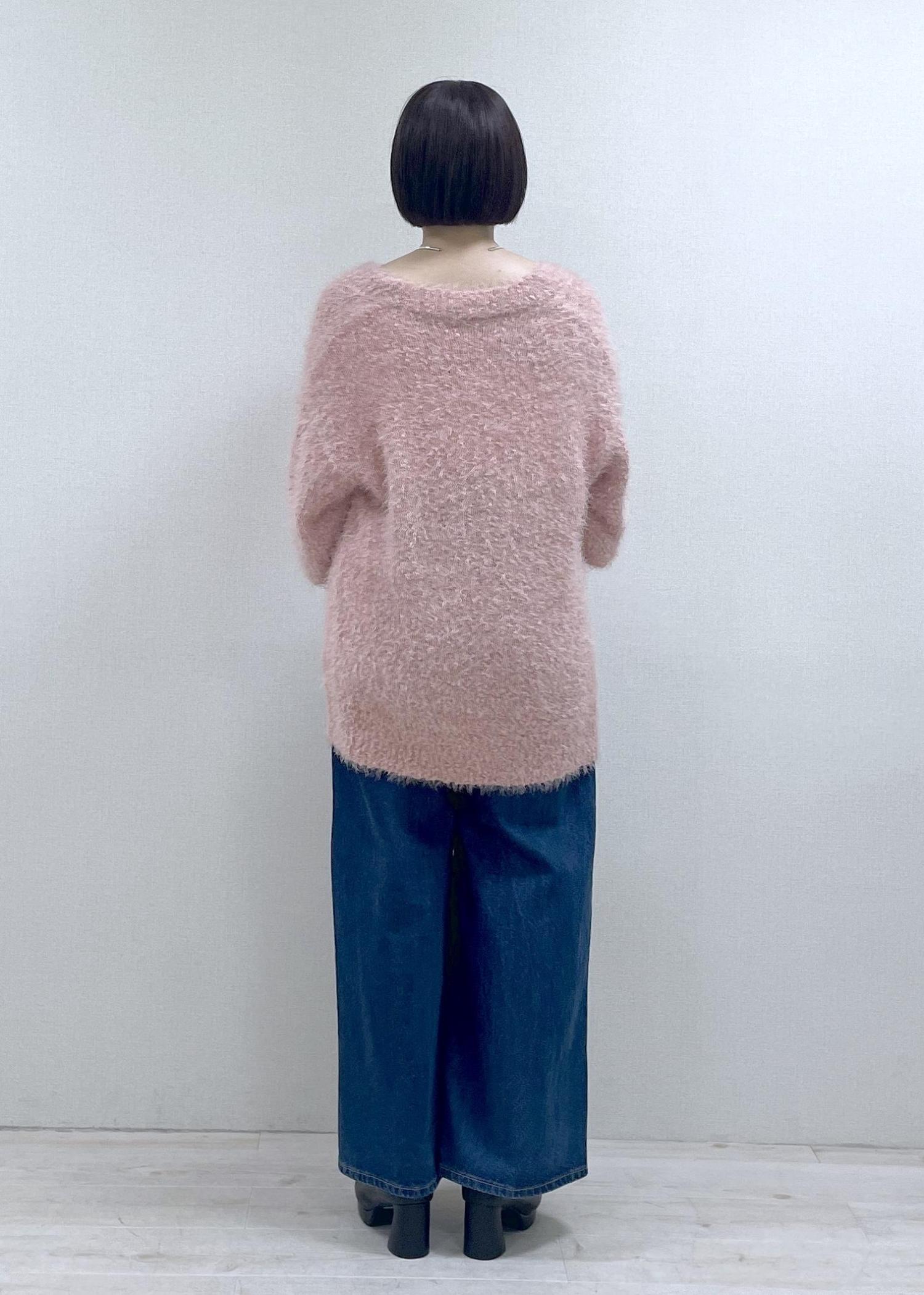 VISポップコーンヤーンラメフェザーニットカーディガン/WEB限定FSサイズピンク / F¥5,271レビュー全体的にゆるっとしており、着丈もお尻がすっぽり隠れる長めの丈です。