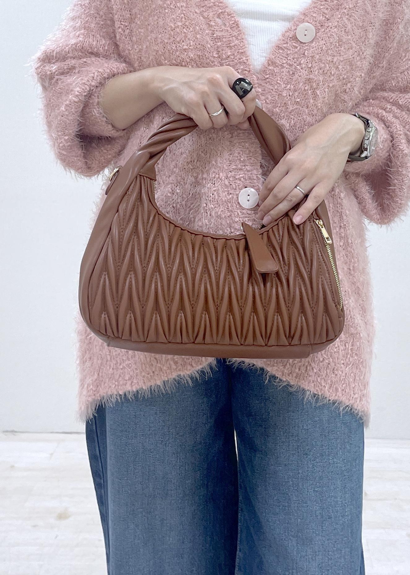 VIS【2WAY】ねじりハンドルキルティングバッグブラウン / F¥7,909レビュー持ってるだけで、アクセントなり、高級感のあるデザインがとてもおしゃれなバッグです。