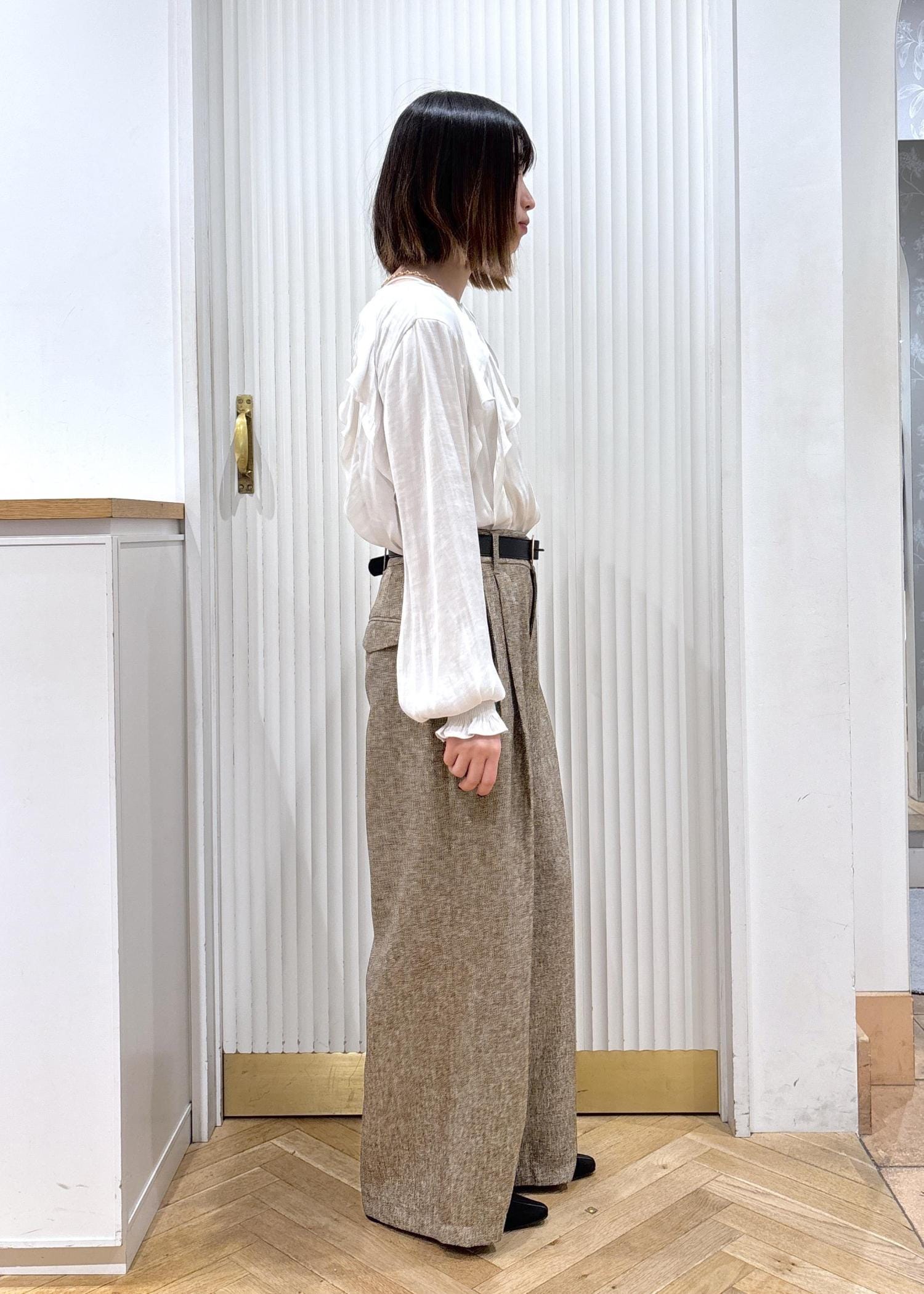 VIS割線フリルブラウス/イージーケアキナリ / F¥5,489レビュー153センチ着用で少しゆったりしたサイズ感でした。手首の部分でしっかり止まるので袖の長さは気になりませんでした。程よくフリルがついているためフェミニンな雰囲気がアップします!