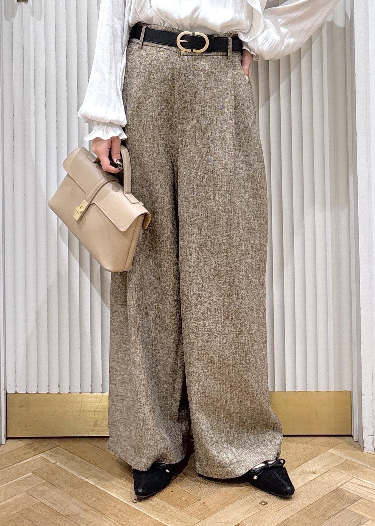 VISツイード2タックワイドパンツブラウン系 / S¥4,612レビュー153センチ着用でギリギリ引きずらない丈感でした。ウエストにかなりゆとりがあるのでベルト必須です。太めのデザインですがタックが入っているため足のラインは綺麗に見えやすいです。