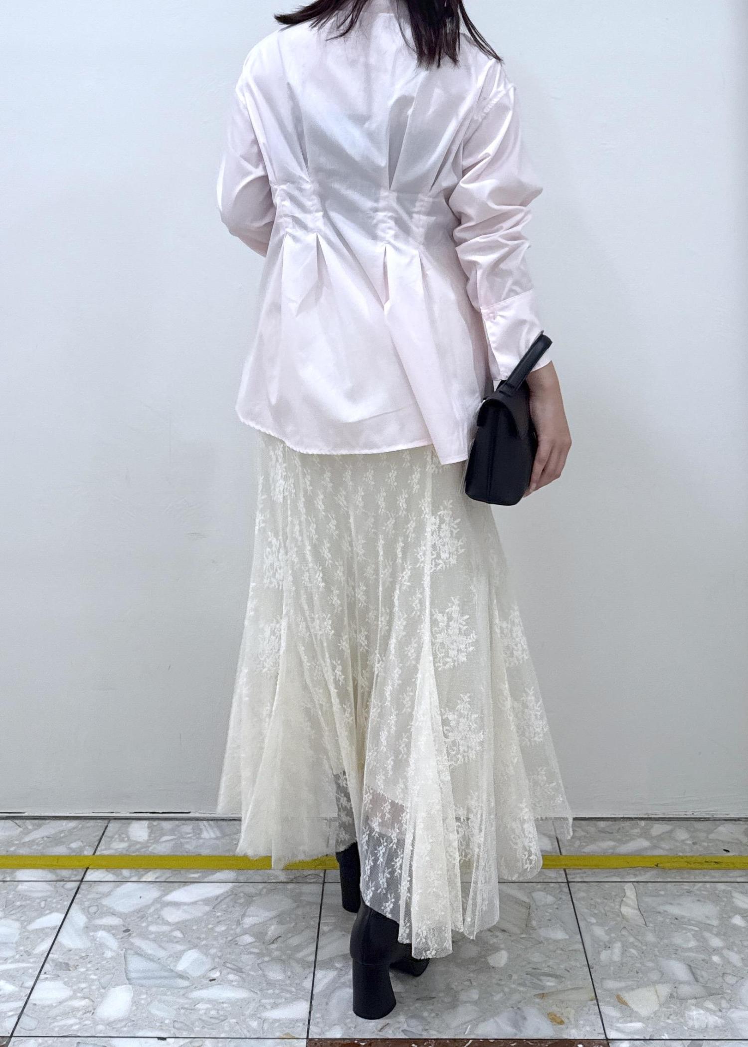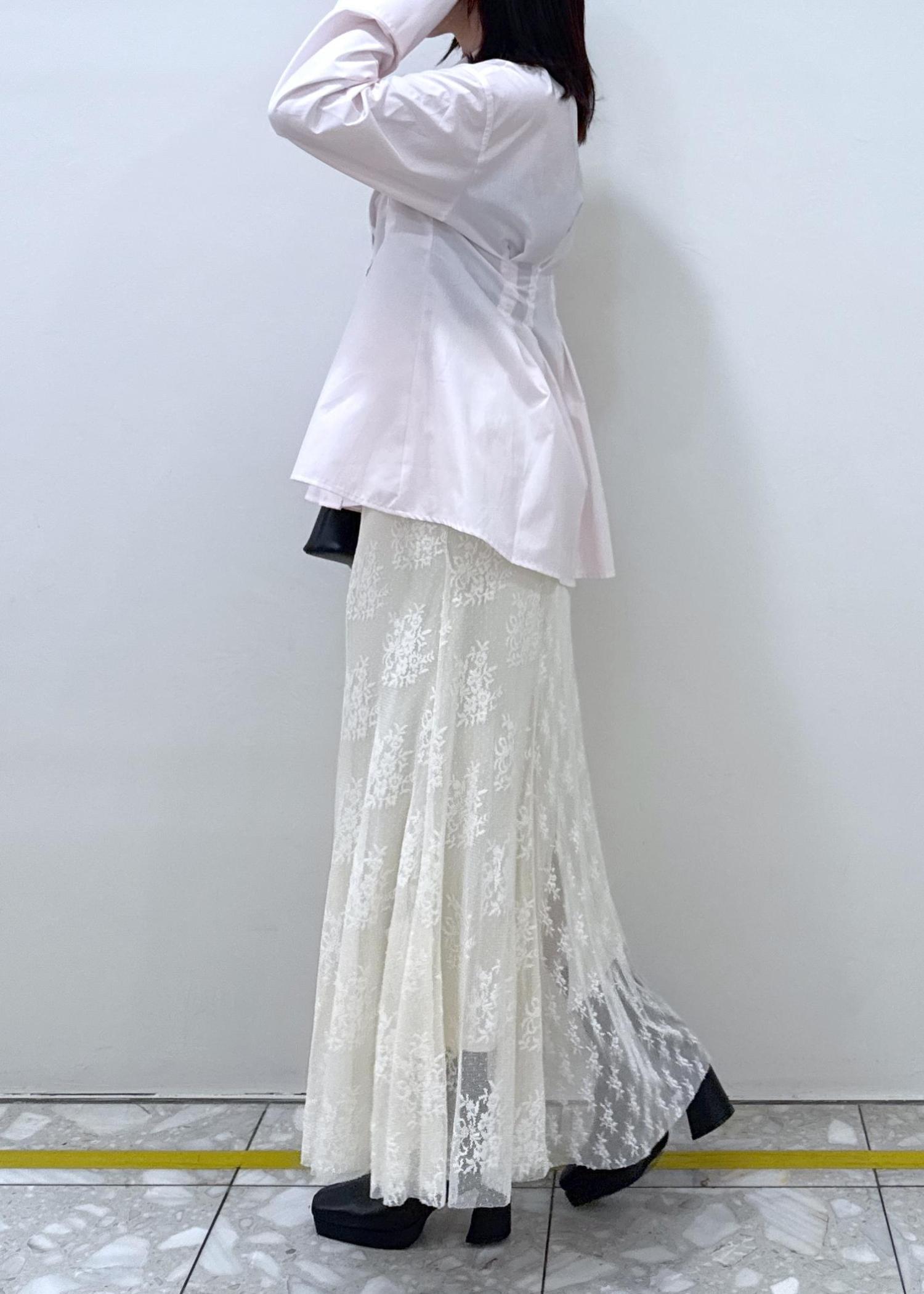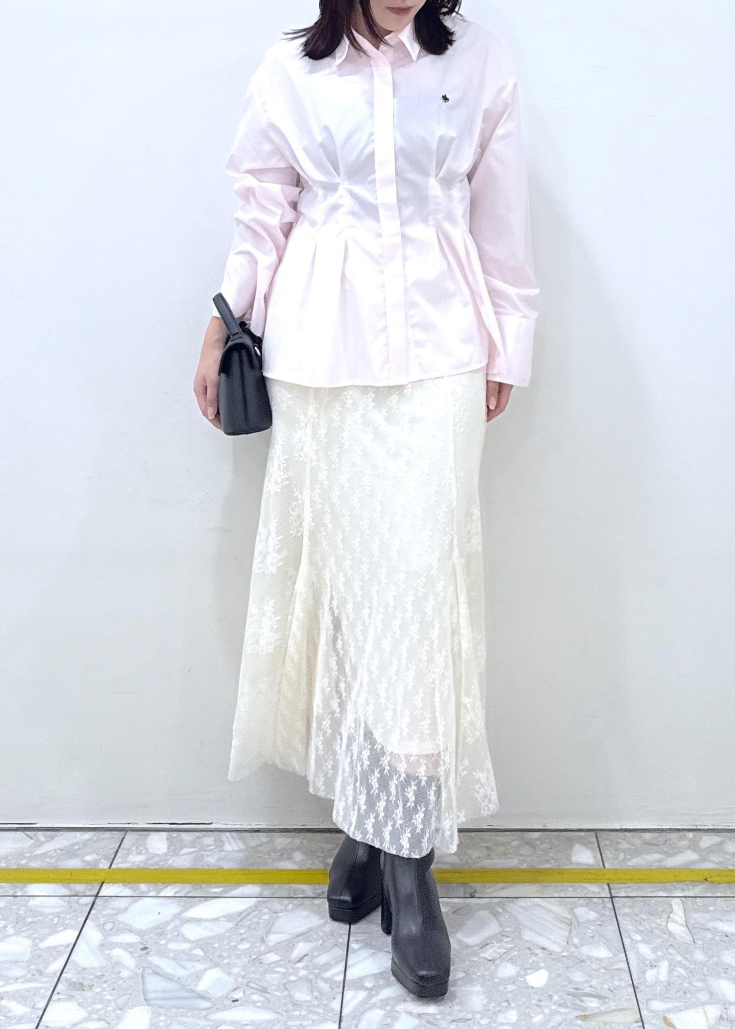 フレアのシルエットが女性らしく、トレンド感ある素材感です!