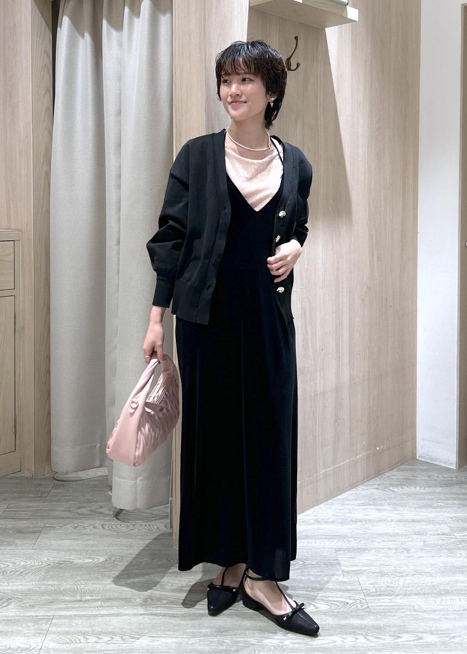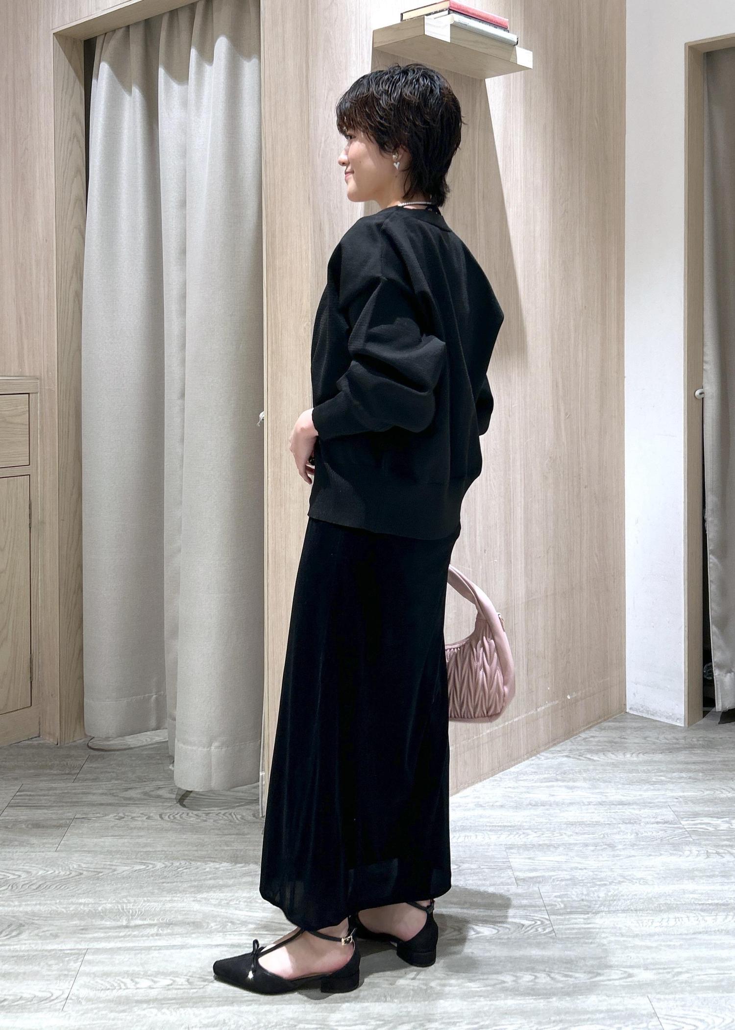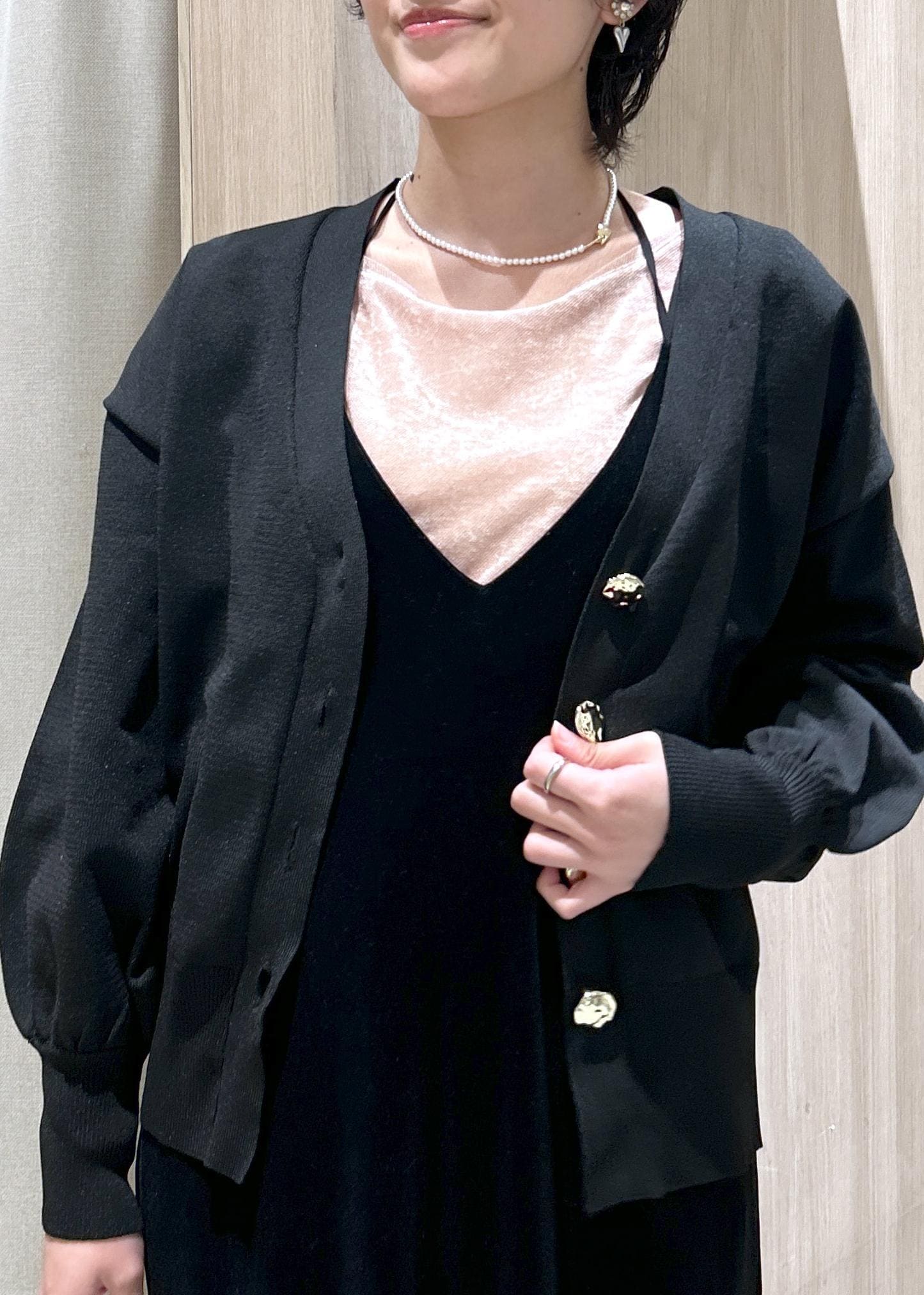 柔らかい素材の、袖や身幅にゆとりのあるカーディガンです。