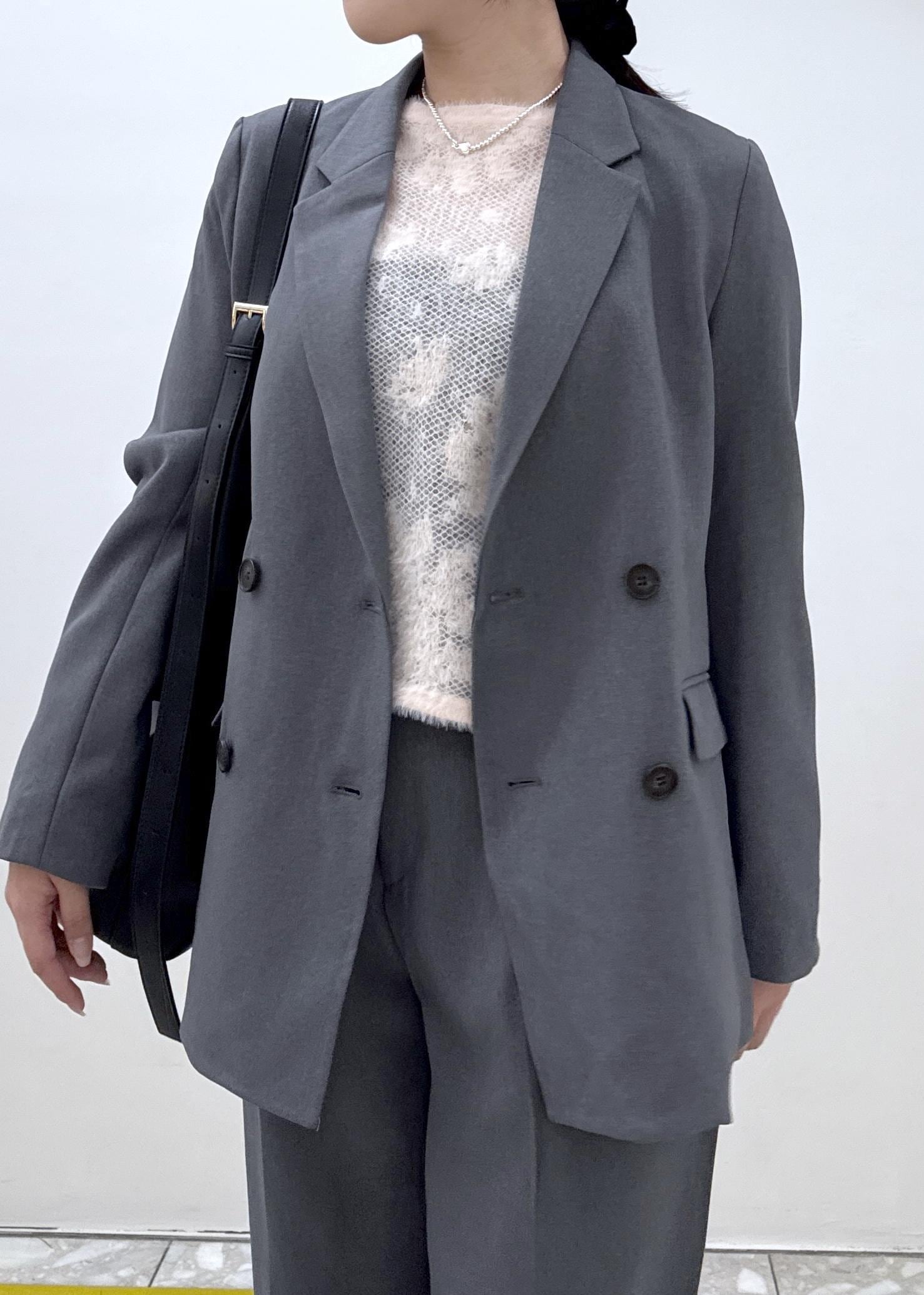 VIS【美easy】ウーリッシュダブルブレストテーラードジャケット【セットアップ対応/洗える】グレー / M¥8,899レビュー160㎝Mサイズ着用してます。Mサイズで着丈や袖にはゆとりがあります!