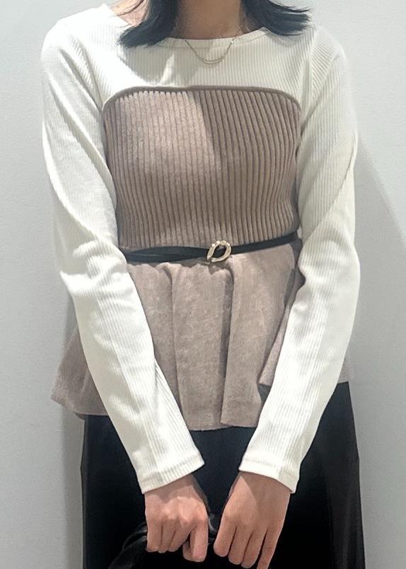 VISペプラムニットドッキングプルオーバーベージュ系 / F¥5,929レビュー1枚で華やかになるレイヤード風デザイン。