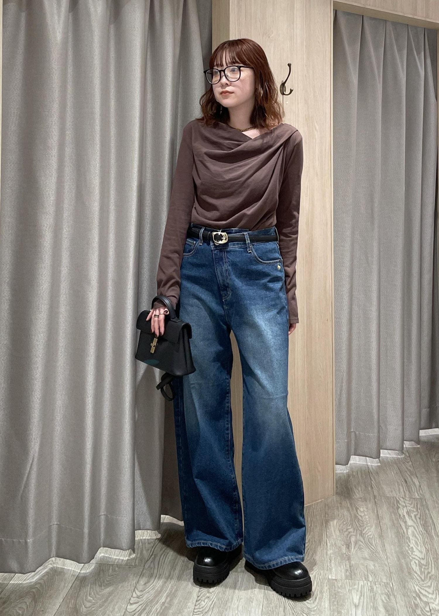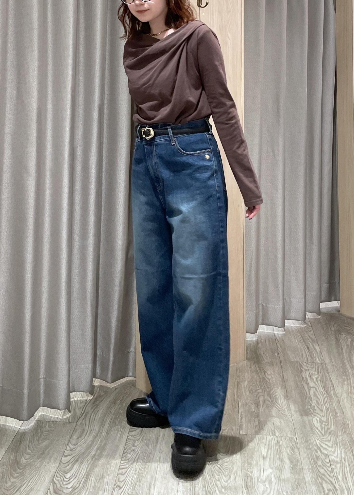 VIS【POLO BCS】VIS別注クロスベルトストレートワイドデニムブルー / M¥9,900レビュー身長159cm/Mサイズ着用。ずるっと履けるこのサイズ感で今年らしくて可愛いです♡太すぎないストレートシルエットなので大きく膨張して見えたりはしないです!シーズンレスで使える万能デニム。