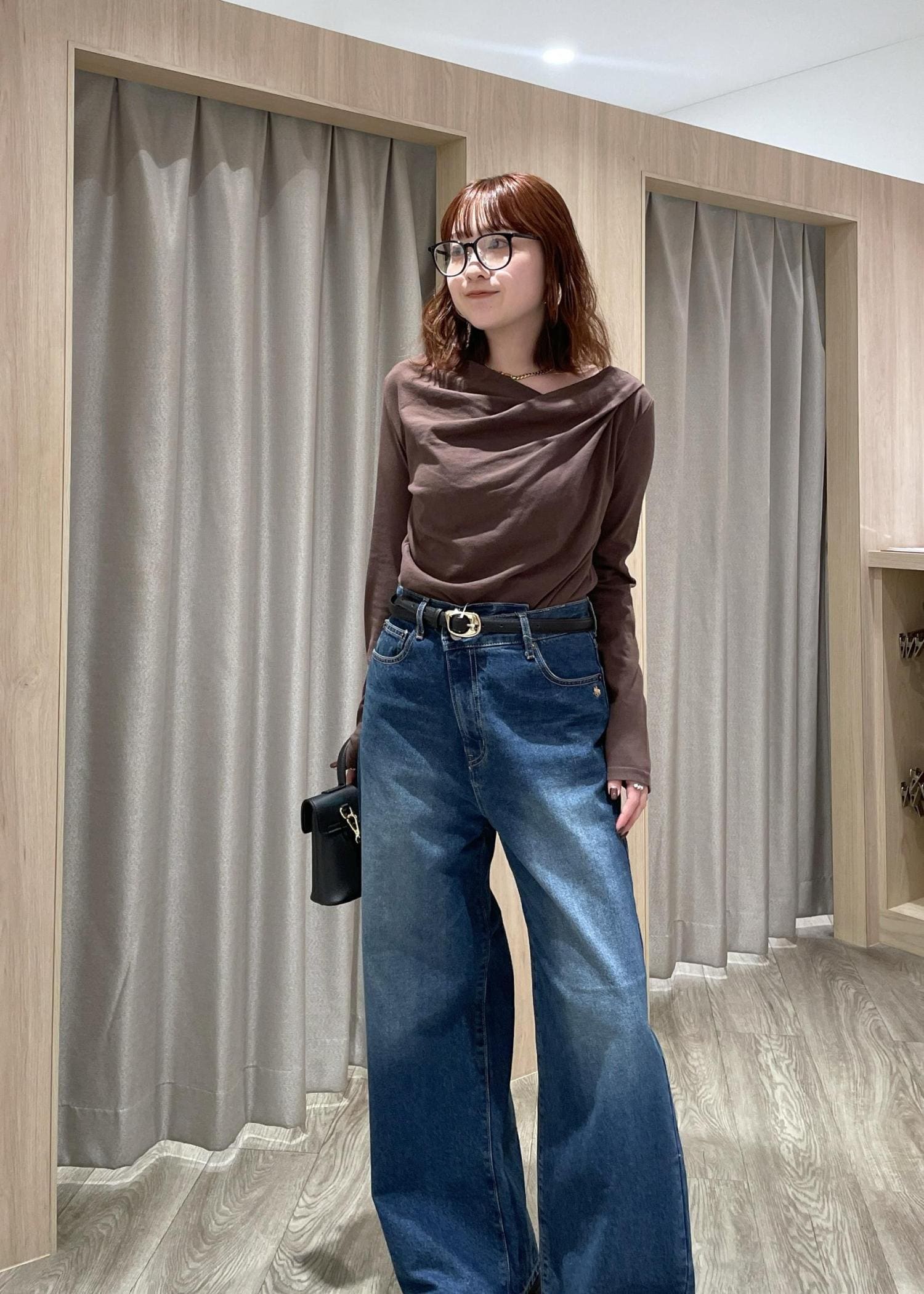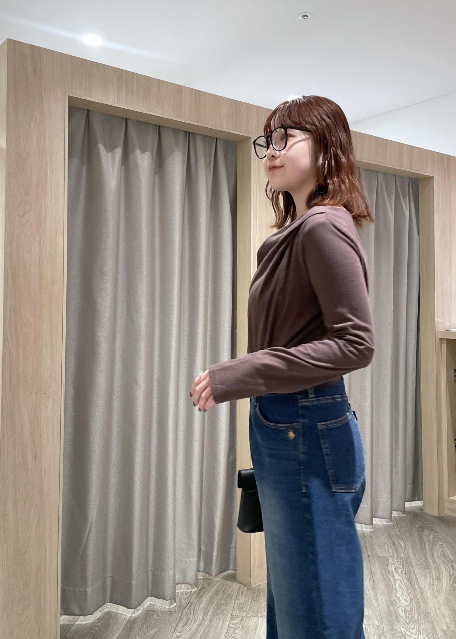 VISドレープオフショルロンT/一部WEB限定カラー・イージーケアダークブラウン / F¥3,949レビュー1枚で着映えしながら、インナー使いもできて着回し力抜群なアイテム♡程よく肌離れするサイズ感、ボディラインを拾いすぎないのも嬉しいポイント。デコルテが覗くデザインで骨ストさんは特には華奢見え効果も◎