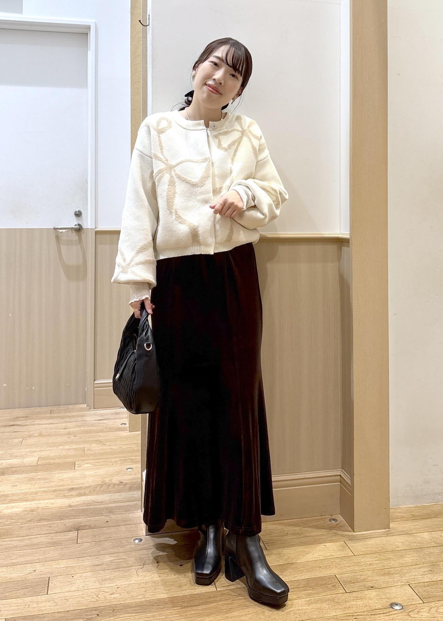 リボンモチーフのカーディガンを