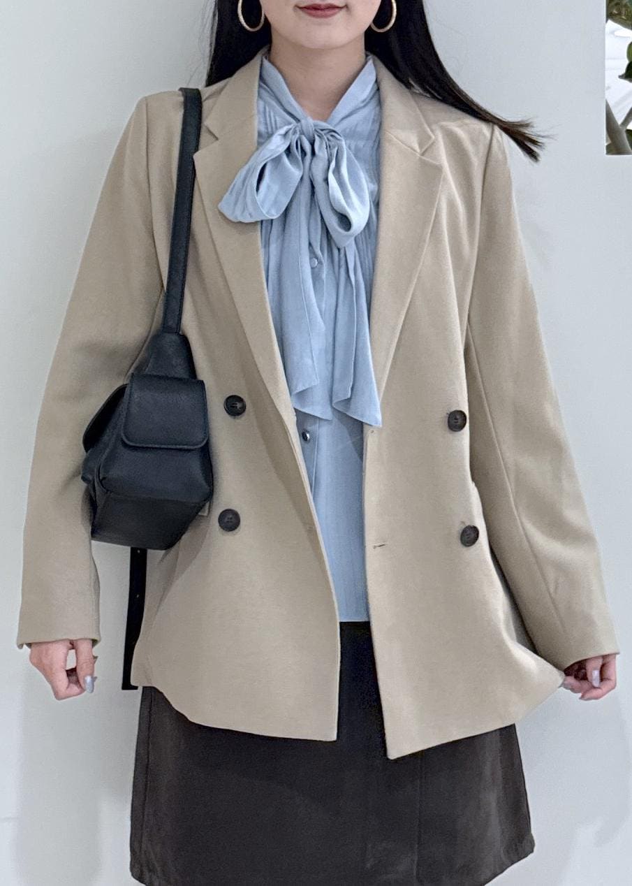 VIS【美easy】ウーリッシュダブルブレストテーラードジャケット【セットアップ対応/洗える】ベージュ / M¥8,899レビュー164cm、Mサイズ着用でヒップの隠れる丈感。