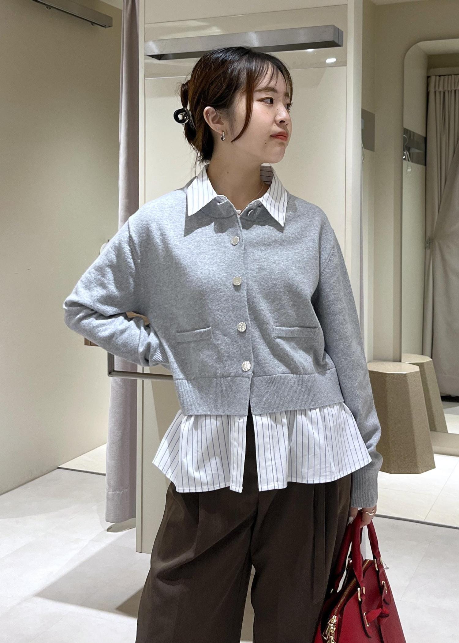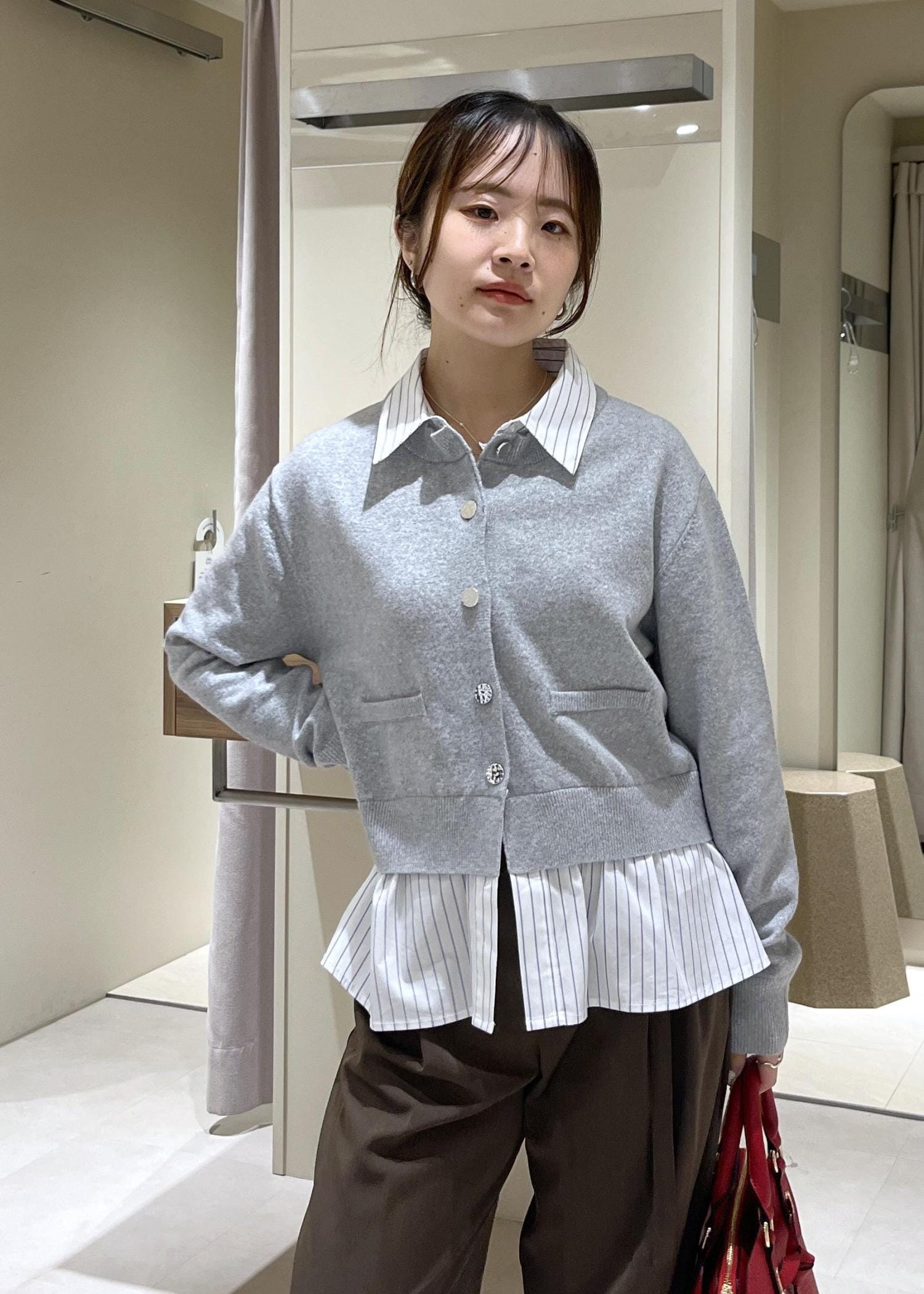 VISシャツレイヤード風メタルボタンカーディガンライトグレー / F¥6,589レビュー今季トレンドのレイヤードが1枚で叶うトップスです!