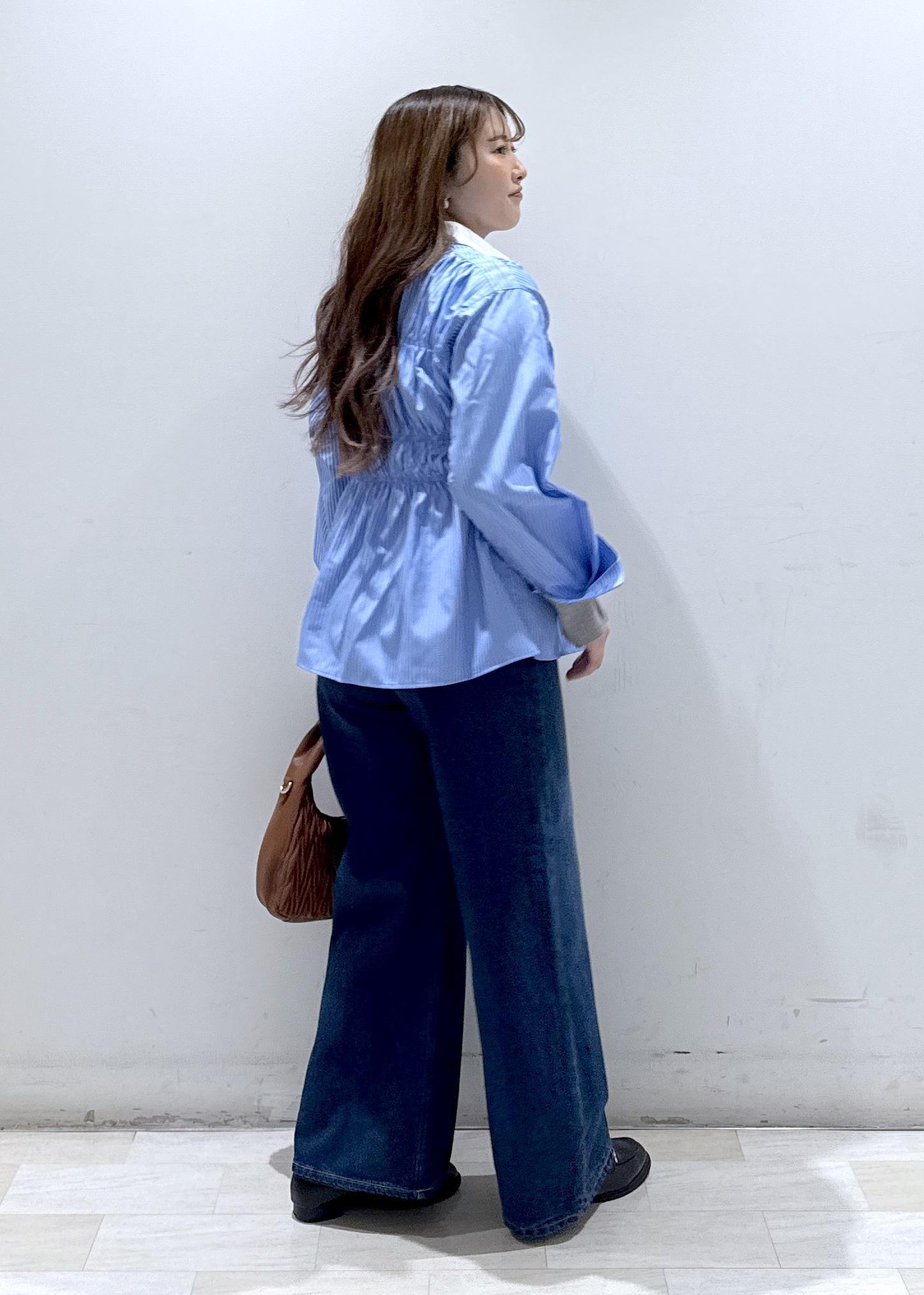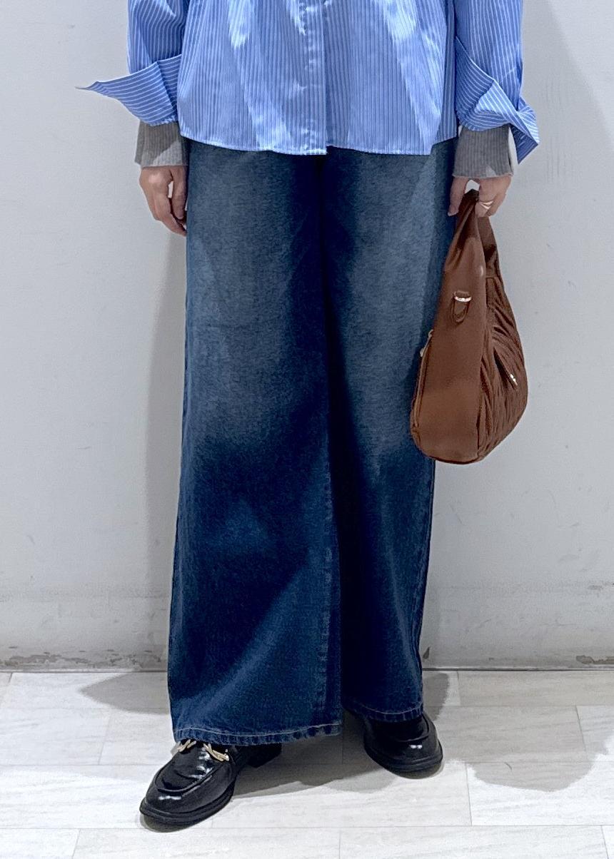 下半身はデニムと合わせることで、スッキリと見せています。