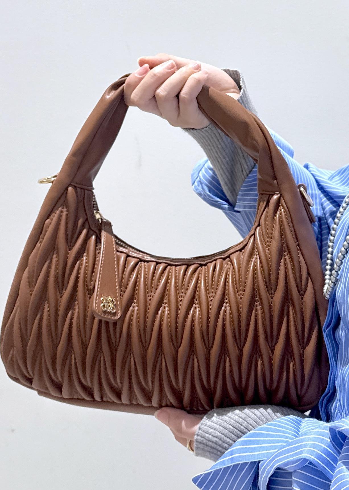 柔らかいキルティングのデザインでこちらのバッグを持つだけで一気にお洒落感がでます。実は2way使用で、ショルダー紐がSETでついているため、気分に合わせてショルダーバッグとしても使えます。