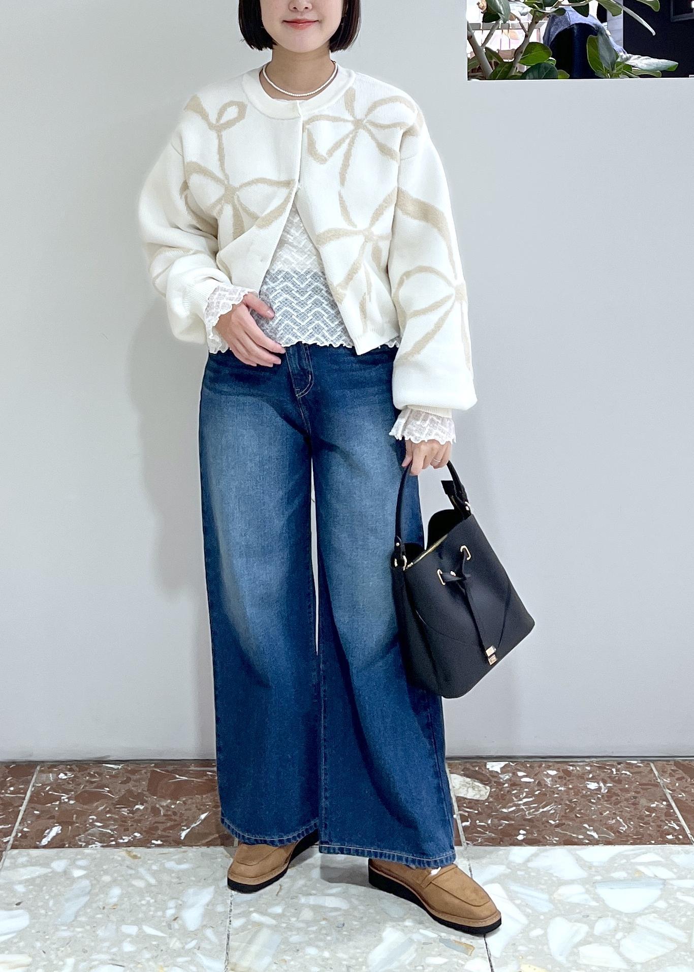 オススメなのはブラック、ブラウンカラーのジャケット、カーディガンなどのインアイテムに合わせるのがオススメです。 -