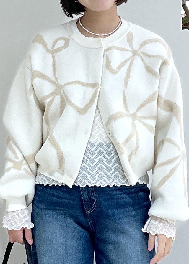 VISリボンモチーフジャガードカーディガン/イージーケアキナリ / F¥6,919レビューリボンプリントが可愛い!