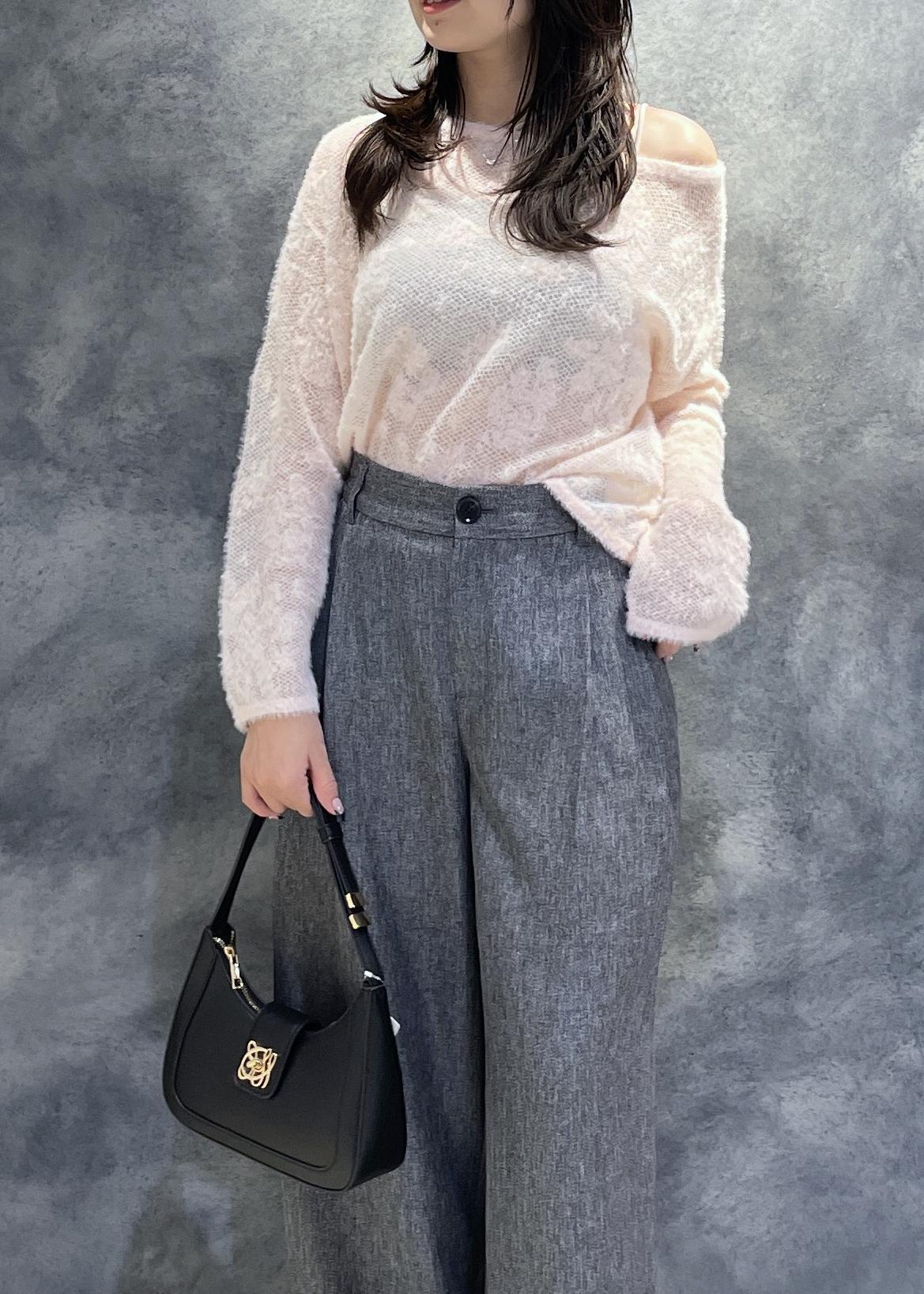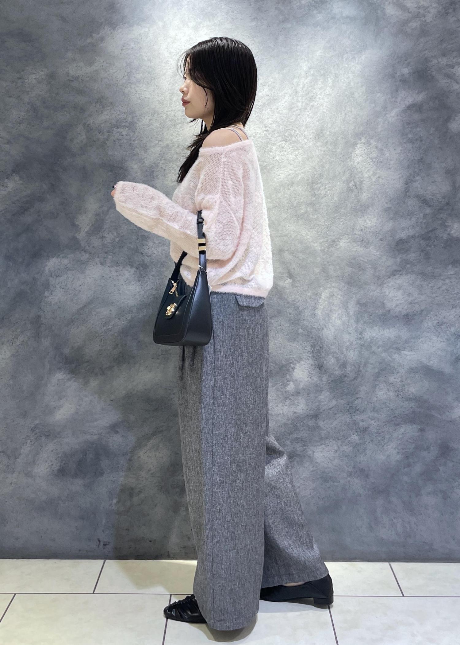 ボートネックなのでワンショルダーとしても着用いただけます。 -