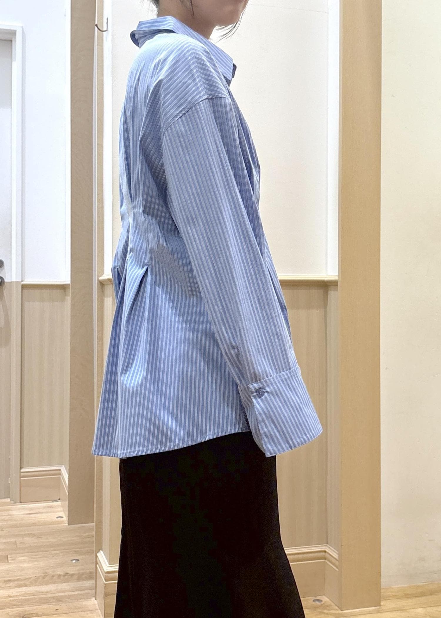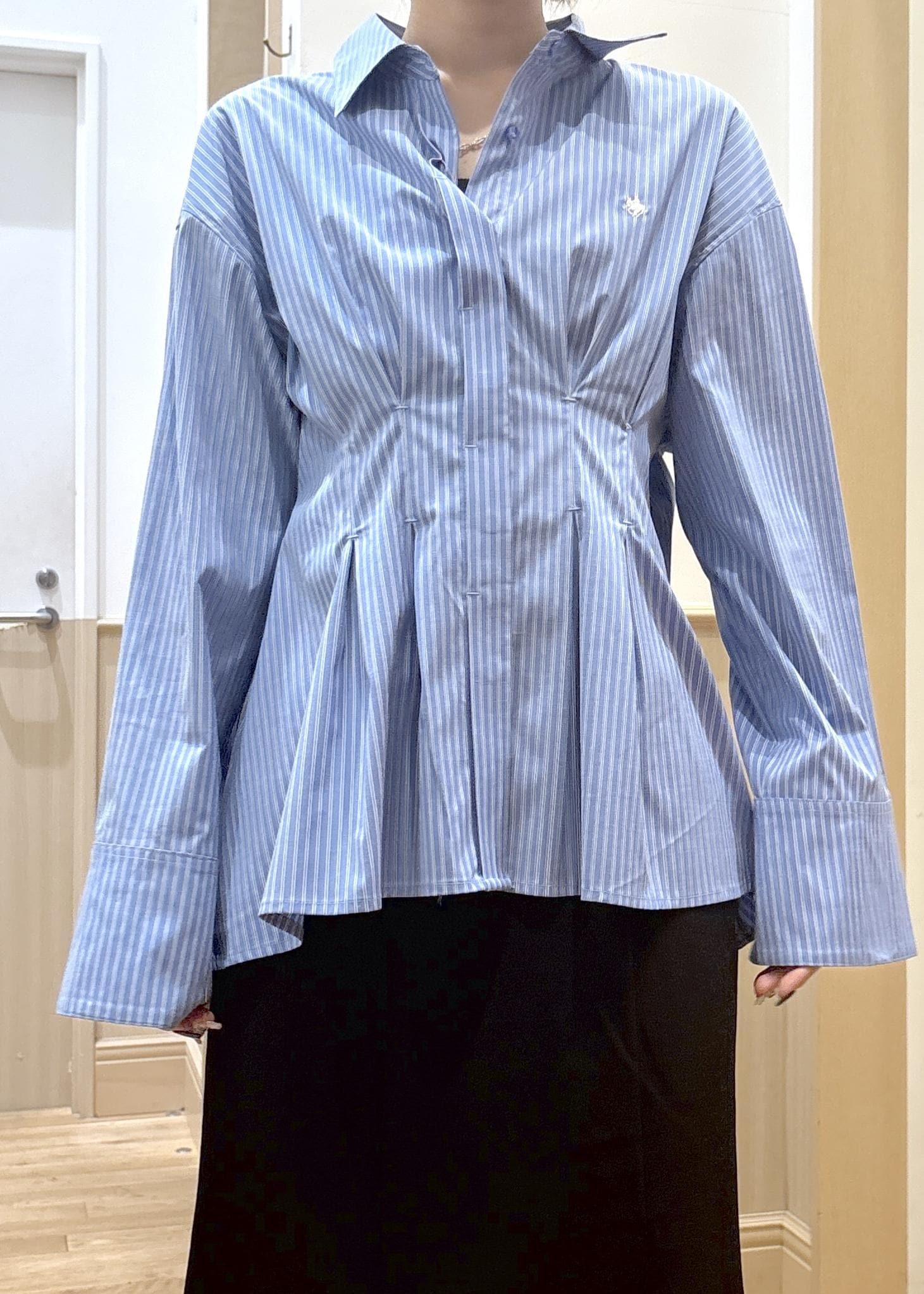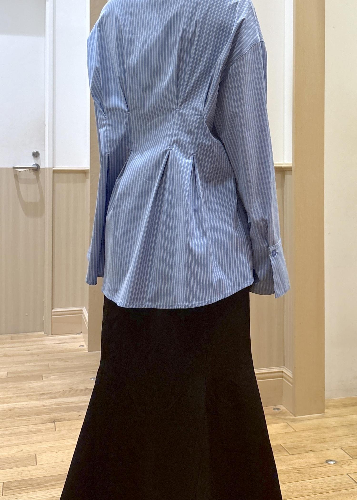 ウエストにタックが入った、フレアのシルエットが可愛いシャツです。